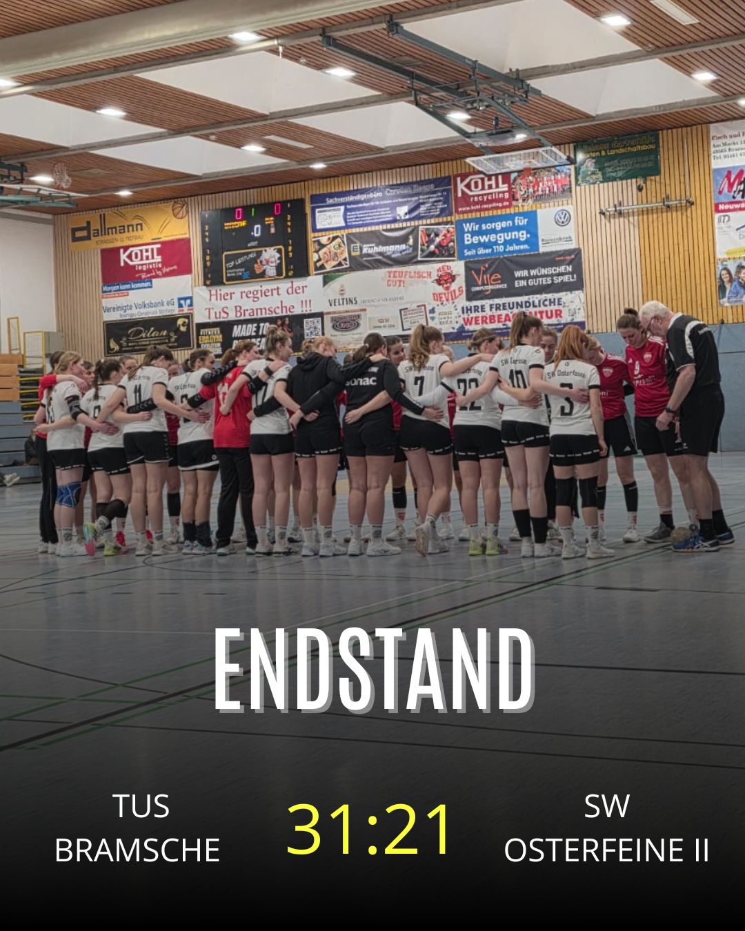 Wir mussten uns leider auswärts gegen TuS Bramsche deutlich mit 31:21 geschlagen geben. Bereits zur Pause lagen wir klar mit 20:7 zurück, weil Bramsche konsequent abschloss. Wir machten viele Fehler in der Abwehr und bekamen den Ball nicht ins Tor.