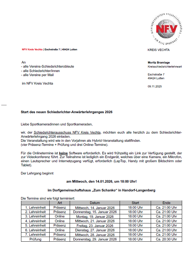 - Spiel – Heimspiel gegen SFN Vechta (Niederlage)