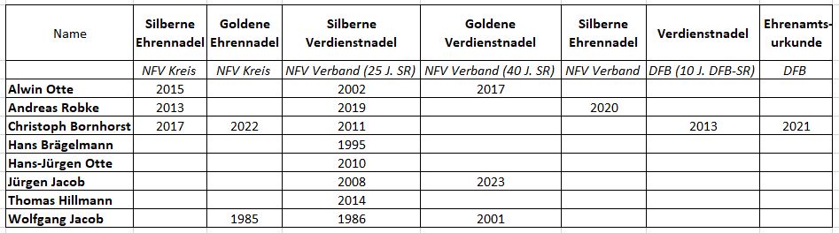 Nachfolgend eine Übersicht von OSV-Schiedsrichtern, denen besondere Ehrungen für ihre Leistungen verliehen wurden: