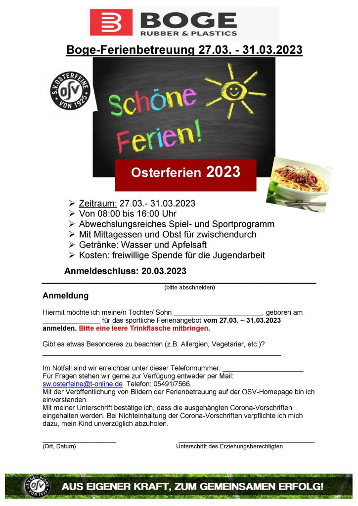 Ab sofort ist die Anmeldung für die Ferienbetreuung vom 27.-31.03.2023 möglich.