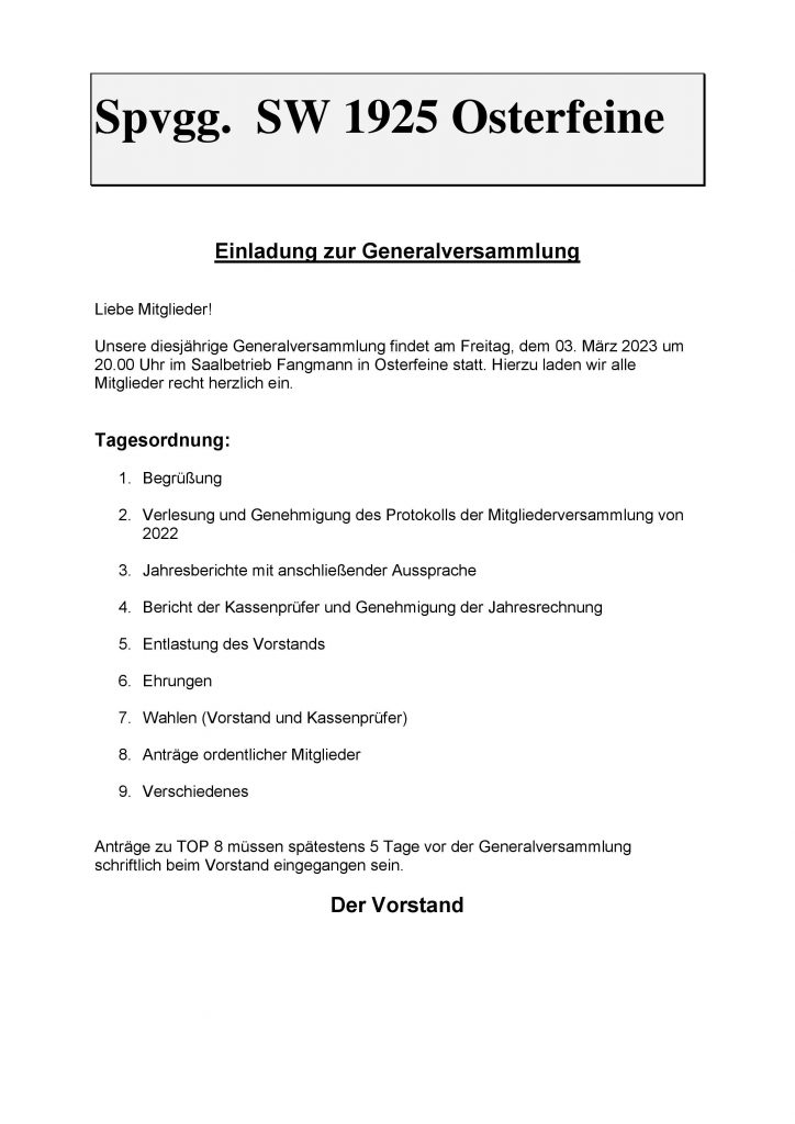 SW Osterfeine zählt zum 31.12.2023 1804 Mitglieder