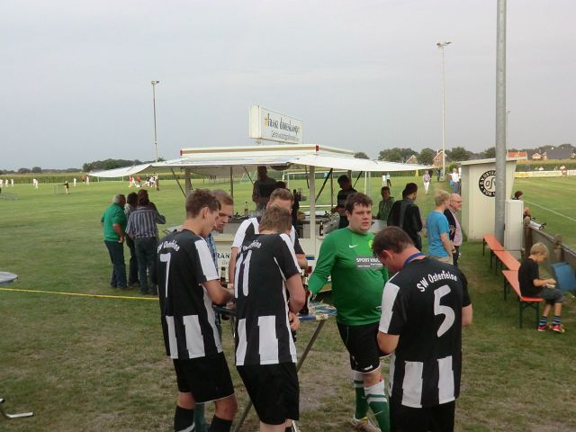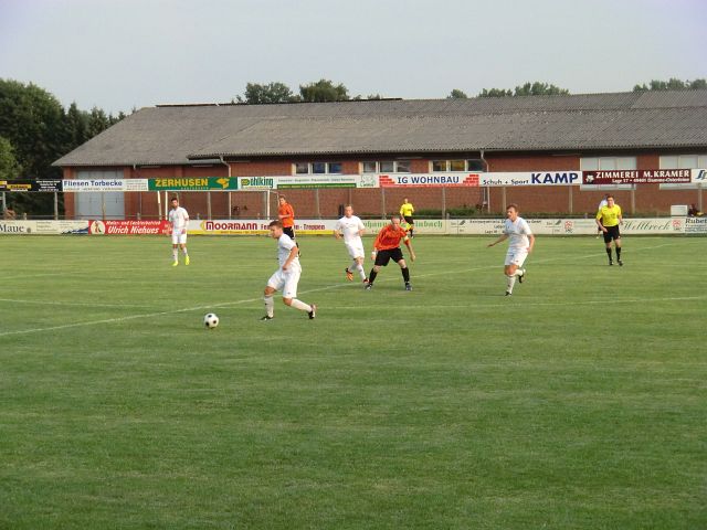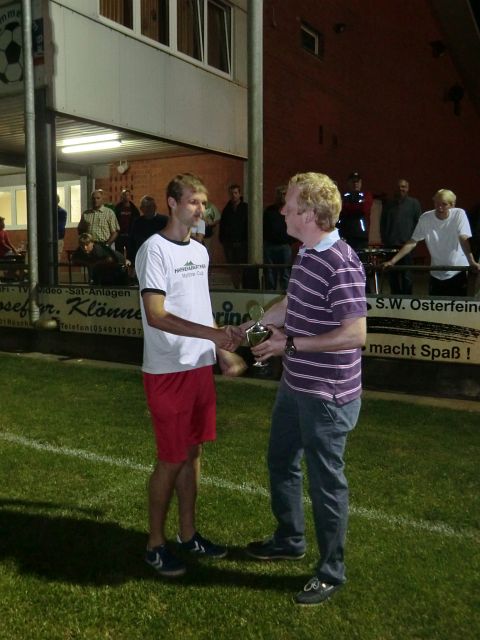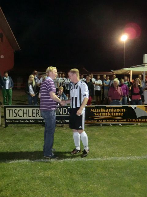 In einer ziemlich ausgeglichenen Partie konnten wir erst im Elfmeterschießen einen Sieg erringen und so ins Finale am Dienstag einziehen! Bereits nach einer Minute konnte Punky den Ball, begünstigt durch einen Torwartfehler, im Netz des Gegners unterbringen! Leider verpassten wir in der Folgezeit die Führung auszubauen, erneut Punky, Andreas Hölzl und Felix Riesenbeck vergaben beste Chancen. So stand es zur Halbzeit eins zu null für uns, aber bereits zwei Minuten nach Wiederanpfiff konnte Damme das eins zu eins erzielen und hatte im weiteren Spielverlauf leichte Feldvorteile ohne richtig Torgefährlich zu werden! Also musste die Entscheidung im Elfmeterschießen fallen, wo unser Torwart Felix Gravemeyer mit zwei gehaltenen Elfern die Entscheidung herbei führte. (Tore für uns: Matze Hillmann, Felix Riesenbeck, Felix große Hackmann und Sebastian Zum Walde)! Die Ergebnisse der Vorbereitung lassen sich sehen und so fiebern wir dem Saisionstart entgegen! Über viele Zuschauer würden wir uns sehr freuen!