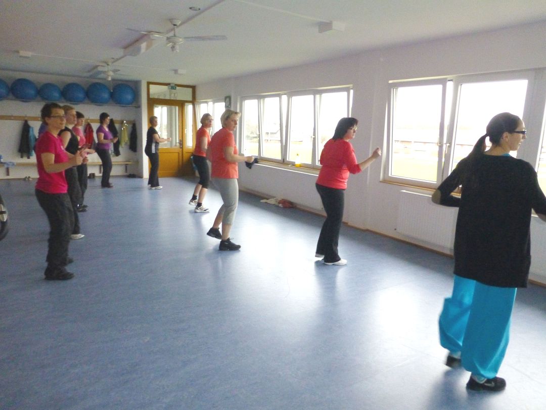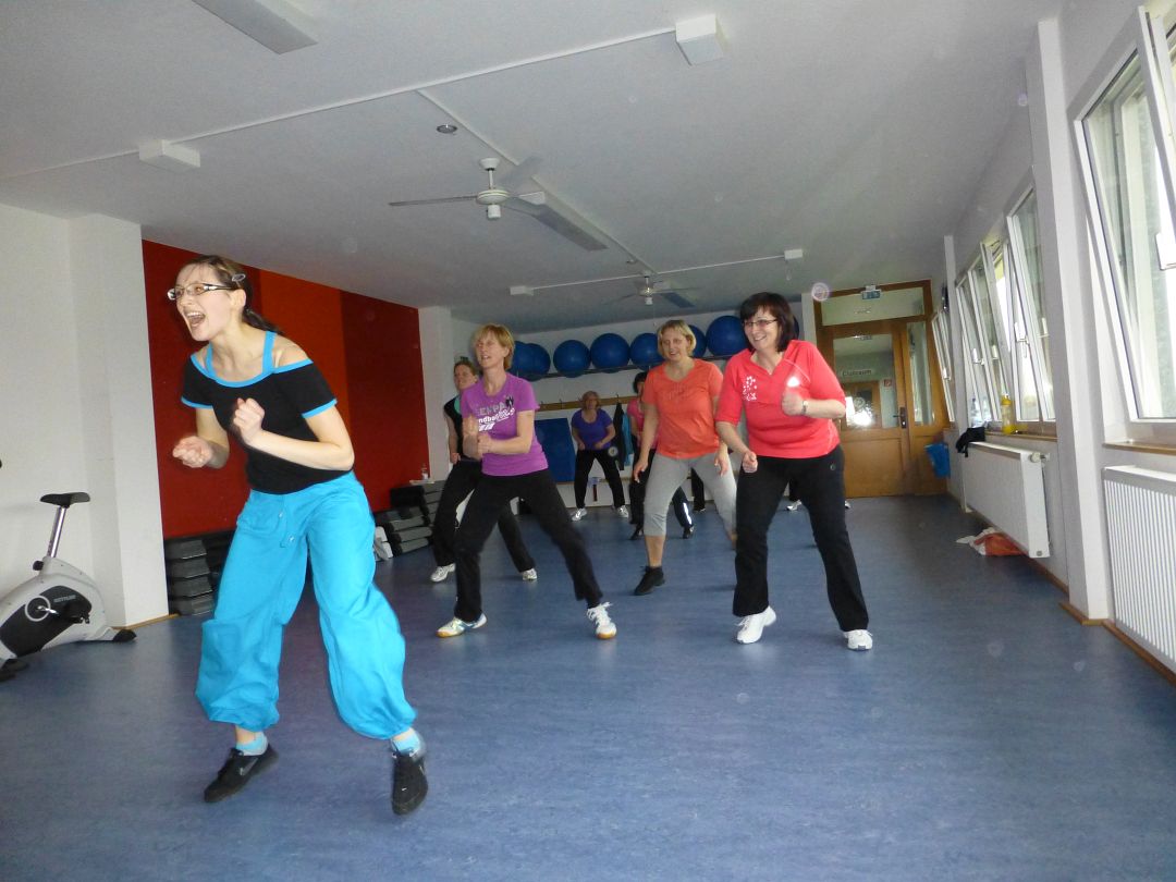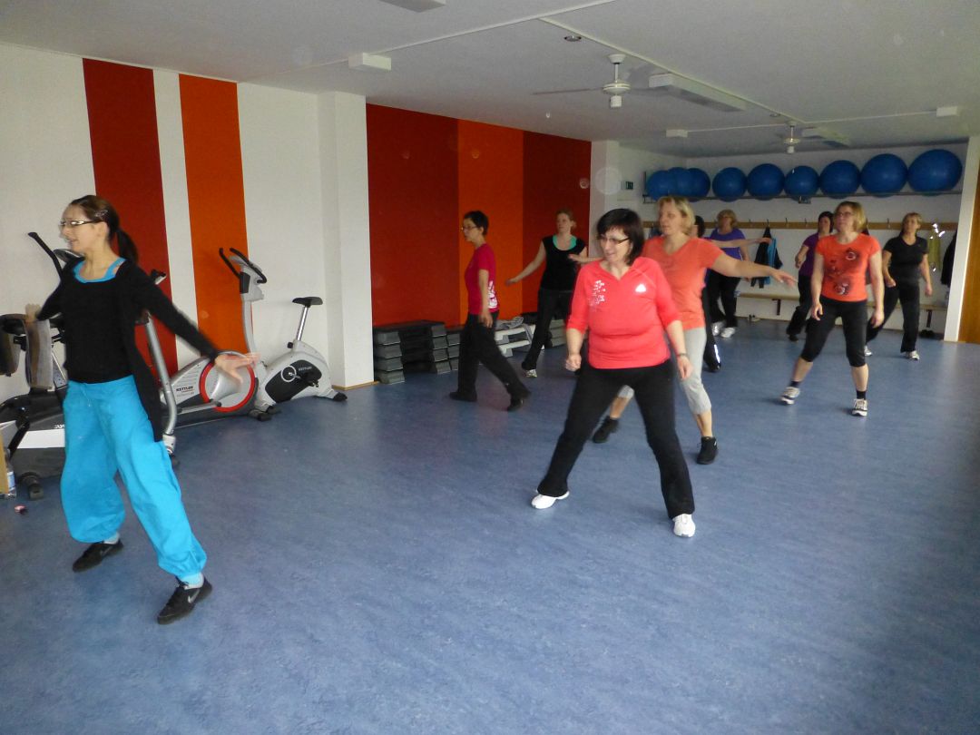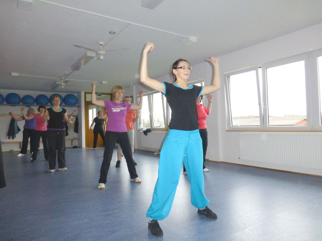 Gestern Abend trafen sich ca. ein Dutzend Frauen, um mit Kristina Denk zu rhythmischer Musik LaGym zu machen und Spaß zu haben. LaGym? – Ähnlich wie Zumba. Kristina hat vor ein paar Wochen ein Lehrgang mit gemacht und gleich viele neue Inhalte in ihre Stunde eingefügt. Es ging sofort los mit Tanzeinlagen und verschiedenen Schrittfolgen verbunden mit Kraftübungen.