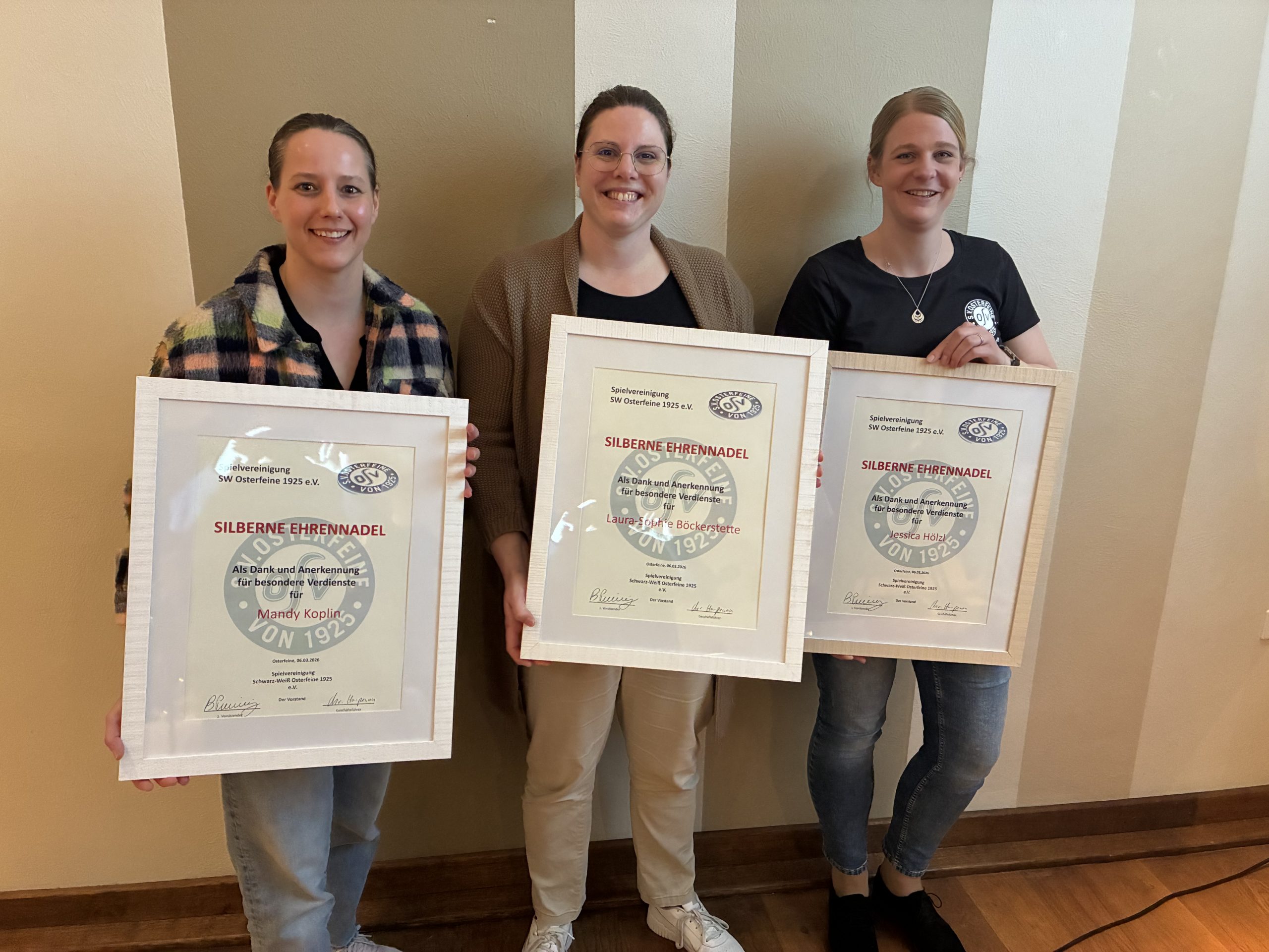 Die „Silberne Ehrennadel“ erhielten Mandy Koplin, Jessica Hölzl, Laura-Sophie Böckerstette, Anna Bley (in Abwesenheit), Theresa Gravemeyer, Bernd Escher (in Abwesenheit), Jan-Bernd Pohlschneider, Franz-Josef „Seppel“ Ripke (in Abwesenheit), Marco Middendorf (in Abwesenheit), Anna-Lisa Zumwalde und Marion Kalus.