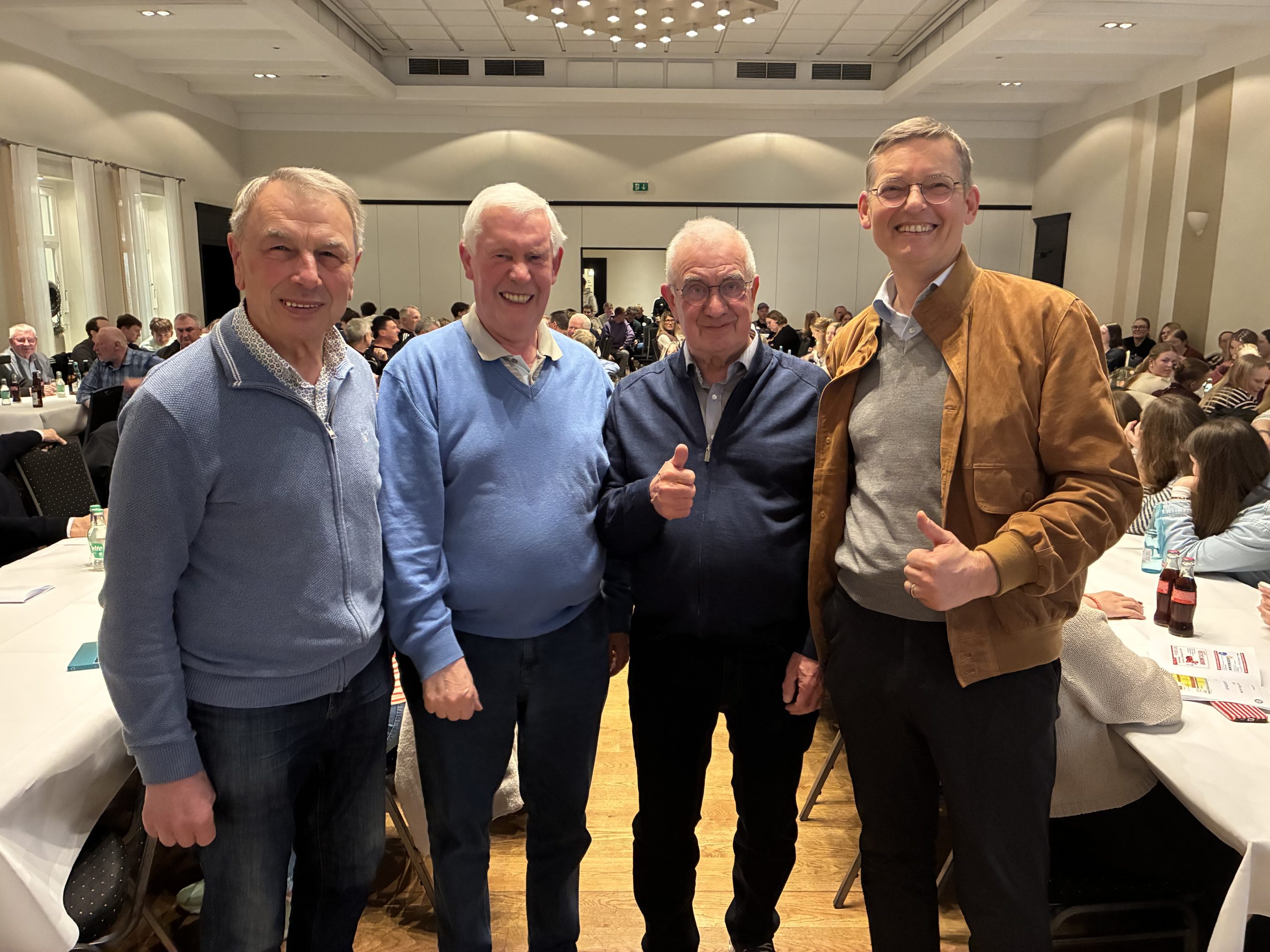 Im OSV pulsiert das Leben des Breitensports, unabhängig vom individuellen Talent, von der Intensität, von der Herkunft oder von der Altersklasse. Viele Bewohner des „Dammer Ostens“ finden in dem üppigen Angebot des Vereins ein sportliches Zuhause. In der Regel stehen die jungen Sportler in einem Sportverein häufiger im Fokus wie die ältere Generation, da der eigene Leistungsanspruch in jungen Jahren zumeist höher definiert wird und die sportlichen Erfolge heutzutage sehr schnell medial dokumentiert werden. In dieser schnelllebigen Zeit wird mancherorts die ältere Generation außer Acht gelassen bzw. schlichtweg vergessen. Der OSV verfügt über Mitglieder, die den Verein in der Vergangenheit mitentwickelt und geprägt haben, die große sportliche Erfolge für den Verein gewinnen konnten, die bis in das hohe Alter am Sportbetrieb teilnehmen und die dem Verein ihr ganzes Leben lang die Treue gehalten haben. Den OSV-Vereinsverantwortlichen ist es wichtig, dass diese Generation nicht übersehen wird und ihr Engagement für den Verein wertgeschätzt wird. Deshalb hat der Verein am 01.02.2026 zu einem „Senioren-Frühstück“ im Clubraum der OSV-Sporthalle eingeladen. Die Organisatoren durften sich über eine Teilnehmerzahl von 70 OSV-„Oldies“ freuen. Die Bandbreite der Gäste reichte von ehemaligen Vereinsvorständen, Legenden vergangener Zeiten in ihrer Sportart, jahrzehntelange Unterstützer, ewige Zuschauer und Sympathisanten, dem Ältestenrat des Vereins, sowie immer noch aktive Sportlerinnen und Sportler. Die Gespräche untereinander waren dementsprechend vielfältig und amüsant. Darüber hinaus gestaltete sich die kurze Vereinsvorstellung durch den 1. Vorsitzenden Bernard „Bubble“ Piening sehr informativ. Besonders eine Landkarte mit markierten Auswärts-Spielorten der OSV-Mannschaften ließ aufhorchen, wie überregional der OSV sportlich heutzutage unterwegs ist. Eine Markierung durfte sogar international gesetzt werden, da die Ski-Gruppe des Sportvereins in den Osterferien mit über 100 Teilnehmern nach Österreich in die 1-wöchige Ski-Freizeit aufbrechen wird.