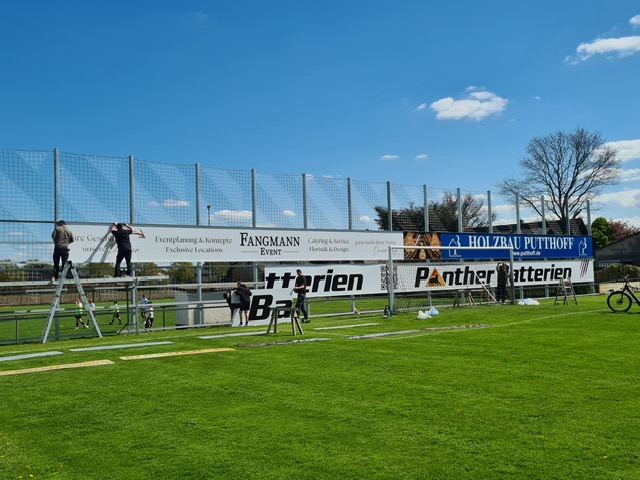 In den vergangenen Tagen haben viele fleißige Helfer den neuen Ballfang-Zaun auf Platz 1 errichtet!