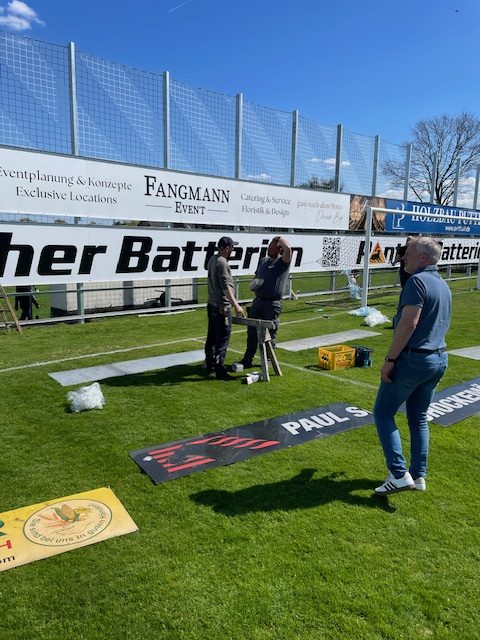 Der imposante Zaun verleiht unserem Sportplatz eine Art „Stadion-Charakter“.