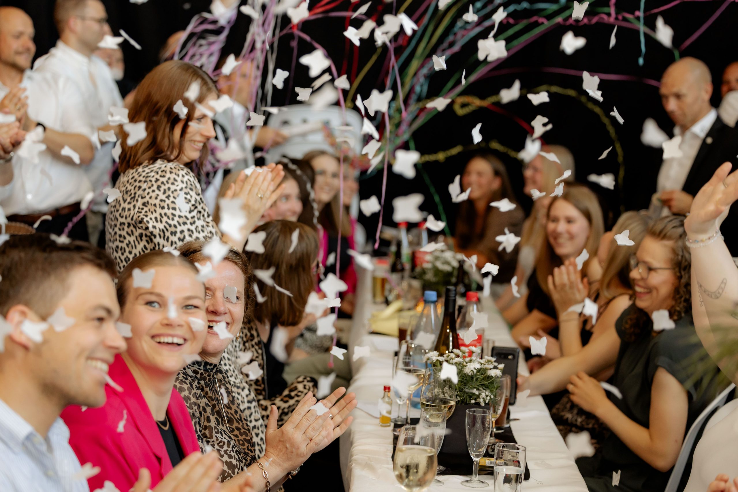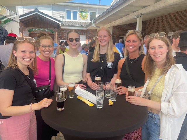 Nach dem Essen folgte eine tänzerische Darbietung der OSV-Sportlerinnen und -Sportler des Jahres von 1991 bis 2024. Der professionellen Leitung von Gretha und Pauline Zerhusen ist es zu verdanken, dass sogar Tanz-Legasteniker wie Andre Lüdeke-Dalinghaus, Michi Bergmann, Michi Harpenau oder Florian „BamBam“ Markus die Choreographie verletzungsfrei absolvieren konnten.