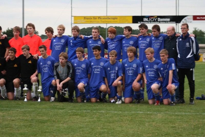 Vor für ein Jugendspiel überragend vielen Zuschauern entschied ein Tor von Simon Stärk nach starker Vorarbeit von Simon Breitenstein ein extrem spannendes Spiel für SW Osterfeine. Obwohl der Gegner spieltechnisch und auch optisch einige Vorteile besaß, entschied der mannschaftliche Kampfgeist das Spiel für Osterfeine. Einige Drangperioden wurde durch eben den Kampfgeist und mit einem sicheren Torwart Steffen Breitenstein gut überstanden. Das Endspiel blieb jederzeit fair und wurde von Schiedsrichter Andre Kramer aus Damme sehr gut geleitet. Ruhig und gelassen ließ er den Jugendlichen an diesem Abend den Vorrang.