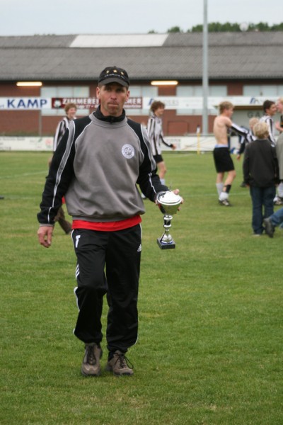Mit zunehmender Spieldauer entstand eine tolle Stimmung unter den Fans. Die jeweiligen Mannschaften wurden von ihren Fans toll unterstützt. So war mit dem Schlusspfiff der Jubel bei den Osterfeinern natürlich riesengroß. Nach dem ersten großen Jubel kam die Presse zu ihrem Recht und mit dem neuen Pokal gab es das Foto für die Zeitung. Nun begann eine tolle Jubelfeier auf dem Sportplatz mit einer Dauer von nochmals 90 Minuten. Es war schön zu verfolgen, wie toll und ausgelassen die Jungs gemeinsam mit ihrem Trainer Reinhard Macke und ihrem Betreuer Hans-Dieter Kohake den Erfolg feierten. Sekt- und Bierdusche für Reinhard und Hans-Dieter, Humba-Gesänge ohne Ende, unsere Jungs standen den Profis nichts nach. Anschließend wurde der Erfolg in den Szenekneipen der Osterfeiner Innenstadt weitergefeiert.