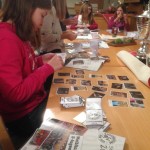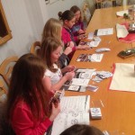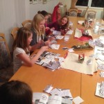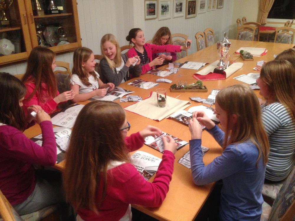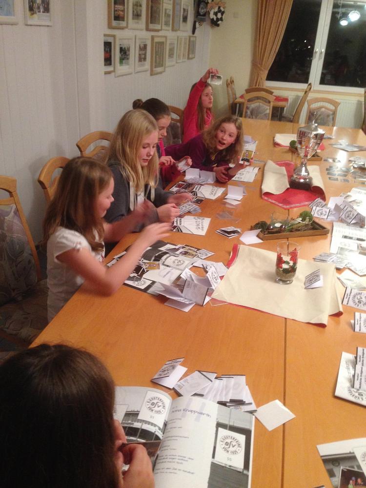 Nach dem Abendessen gab es eine große Überraschung. Als beim Spiel in Steinfeld der Hobby-Fotograf Jens Ruholl dabei war und Fotos machte ahnte noch keine etwas von so einer einmaligen Überraschung. Trainer Christian Lamping machte aus den Fotos mit seinem Geschäft „Stick it now“ ein Stickeralbum mit 75 Klebebildchen. Hierzu sei gesagt: „Die WjD II ist die erste Mannschaft vom SV SW Osterfeine und der gesamten Handballregion, die ihr eigenes Stickeralbum haben“. Die Mädels waren echt begeistert von diesem Geschäft, so dass die geplante Nachtruhe von 22 Uhr vom Trainer aufgehoben wurde und die Nacht zum Tag gemacht wurde. Bis 0:30 Uhr hieß es im Clubraum sammeln, tauschen und kleben. Danach hieß es Gute Nacht.