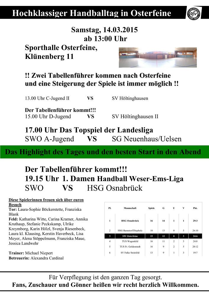 Kommt vorbei und unterstützt unsere Handballer. Bringt alle eure Fanartikel mit und feuert unsere Mädels an :)
