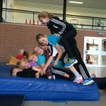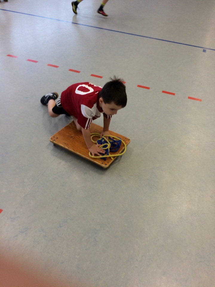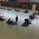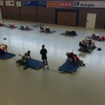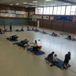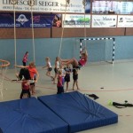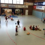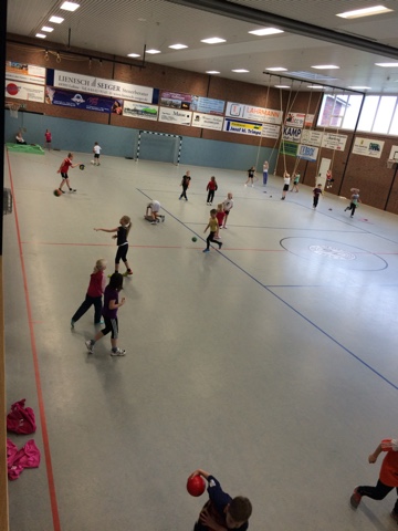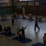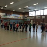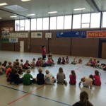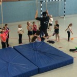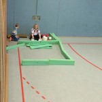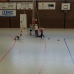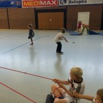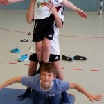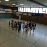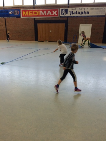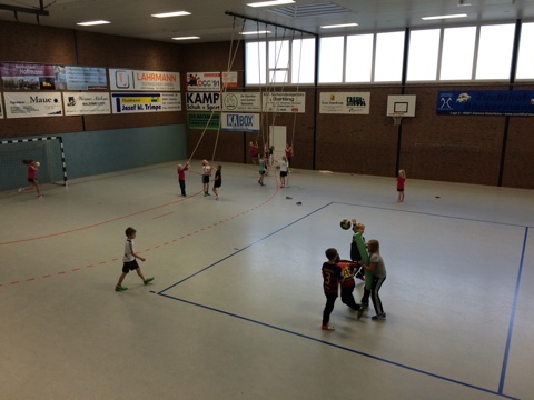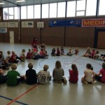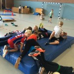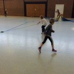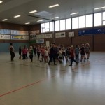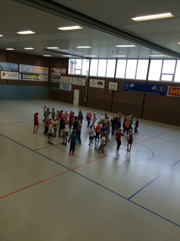 Am Montagmorgen mussten zunächst noch Zurückhaltung, Schüchternheit und vielleicht auch ein bisschen Angst vor den vielen fremden Gesichtern überwunden werden, doch dann konnte nach einer kurzen Begrüßungsrunde der Spaß beginnen. Rund 55 Kinder hatten sich für diesen Tag angemeldet und am vormittag wurden dann erst einmal ein paar Kennenlernspiele gespielt. Anschließend spielten wir Spiele wie Hundehüttenticken, Schuhsalat, Tom und Jerry, Menschen-Memory usw. Nach dem Mittagessen (es gab zur Freude der Kids Spaghetti Bolognese) teilten wir die Gruppe dann auf. Draußen konnten die Jungs und Mädels Fußball spielen und drinnen wurde ein Brennball-Feld aufgebaut. Zum Abschluss spielten wir dann mit allen zusammen eine große Runde Möhrenziehen, was wohl vor allem zur Belustigung der an der Tür wartenden Eltern führte, denn das Ganze war ein riesiges Chaos, das nur mit Hilfe der Betreuer gelöst werden konnte. Als alle „Möhren“ getrennt waren, gingen alle nach Hause um Kraft für den nächsten Tag zu sammeln.