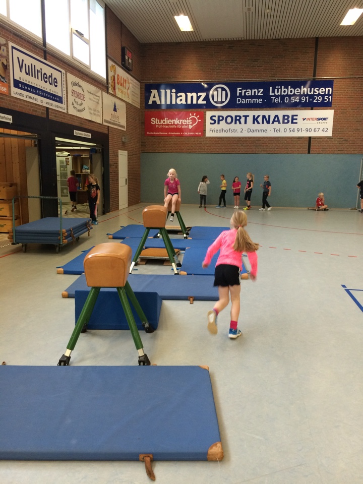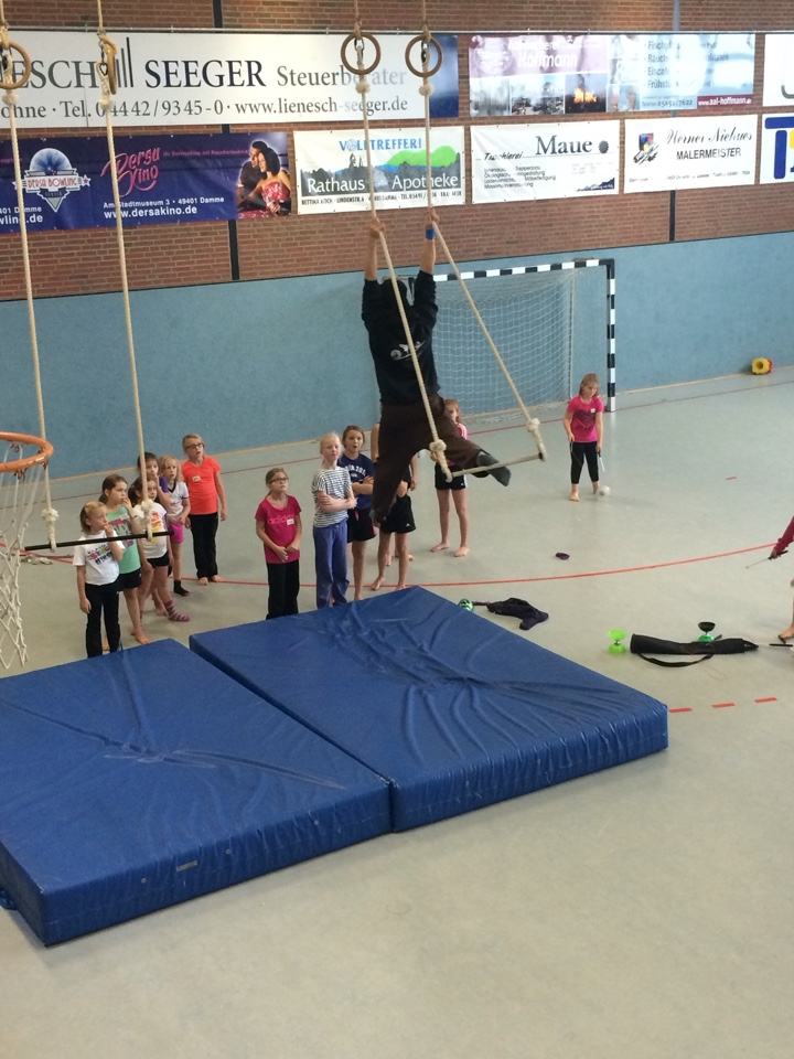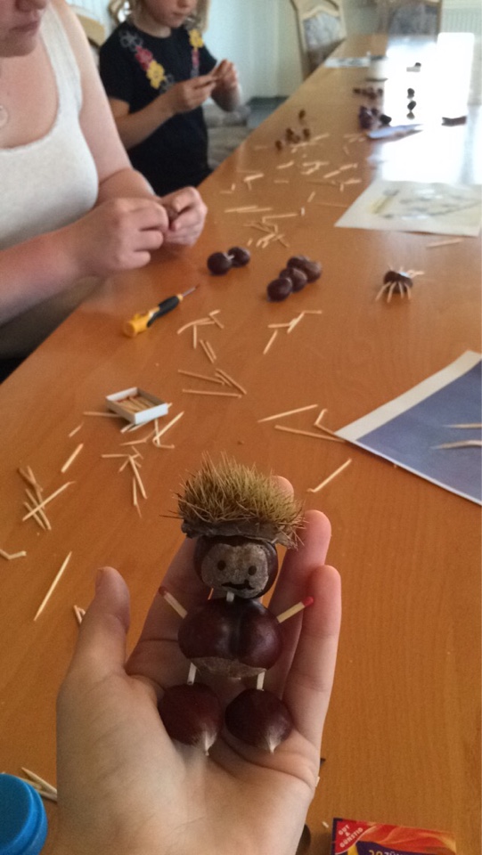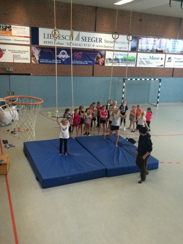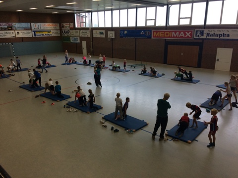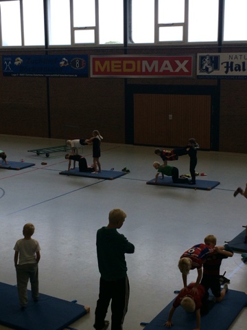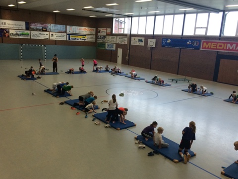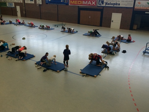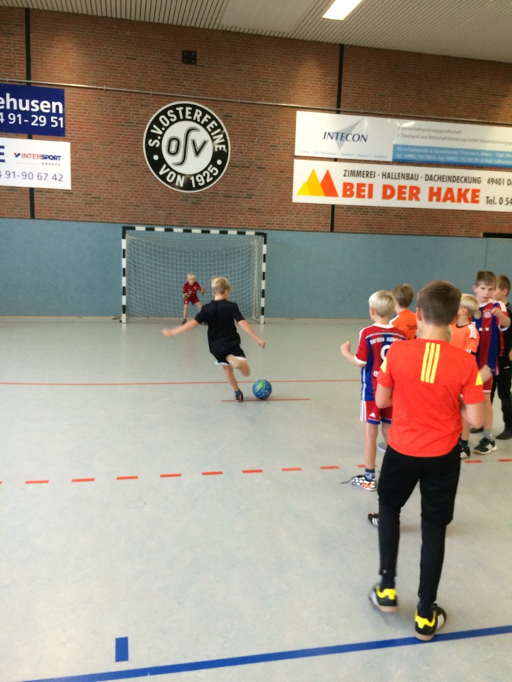 Ganze 62 Kinder fanden sich am Donnerstag in Osterfeine ein. Vormittags wie nachmittags konnten sich die Kids wieder zwischen Clubraum und Halle entscheiden, mit dem kleinen Unterschied, dass diesmal nachmittags auch gebastelt wurde. Nach anfänglichen Schwierigkeiten waren am Ende des Tages dann doch noch einige Pferde, Igel, Sonnen, Ameisen, Schlangen, etc. aus Kastanien entstanden.