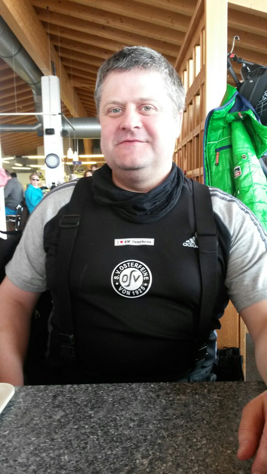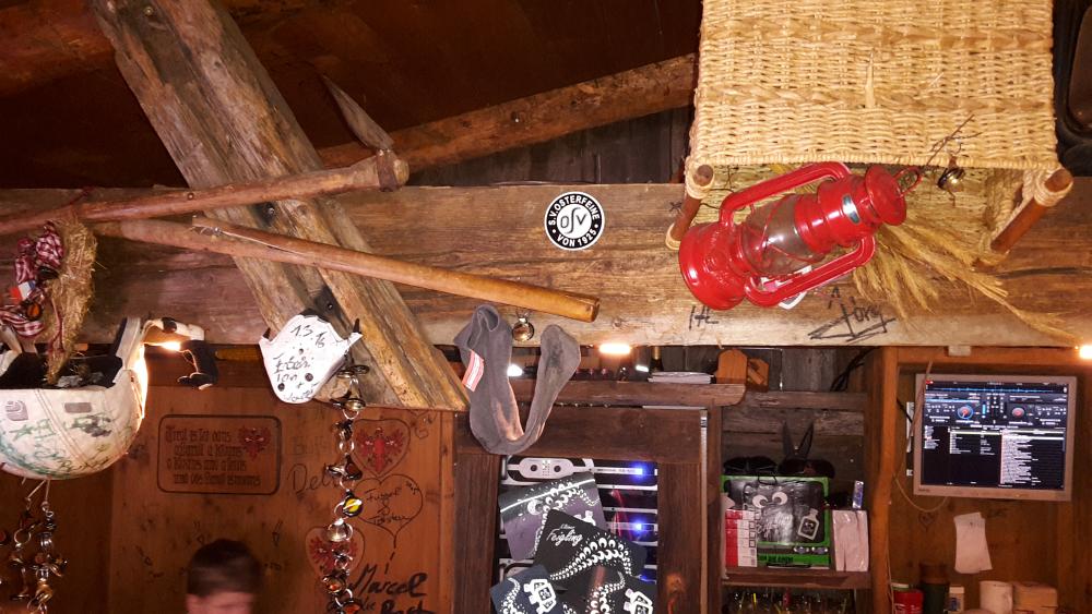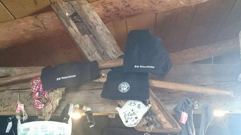 Bei wieder herrlichem Wetter genossen wir den letzten Tag auf den Skipissten. Beim Frühstück wurde beschlossen, dass doch der Sportverein SW Osterfeine an der einen oder anderen Stelle in den Oetztaler Bergen „verewigt“ werden sollte. So wurden z. Bsp. in der Bielefelder Hütte, eine der bekanntesten Après-Ski – Hütten in Oetz, in 2150 m ü. N., Aufkleber angebracht (siehe Bild). Nachdem der Auftrag erledigt wurde, ging es zurück zum Skiverleih, um die Skiausrüstungen abzugeben. Einige Teilnehmer kauften nach zähen Verhandlungen mit dem Verleiher noch das eine oder andere Paar Skischuhe und auch Skier. Unser Skiurlaub neigte sich dem Ende. Im Hotel angekommen wurden die Koffer gepackt und der Bus beladen. Nachdem wir uns bei dem Betreiberehepaar wie auch den Angestellten des Hotels Jägerhof bedankt und verabschiedet hatten, startete der Bus mit Fahrer Olli um genau 20:20 Uhr in Richtung Osterfeine. Nach genau 10 Stunden Reisezeit erreichten wir am 26.03.2016 um 6:20 Uhr Osterfeine. Dort warteten teilweise schon Familienangehörige, um ihre Verwandten abzuholen.