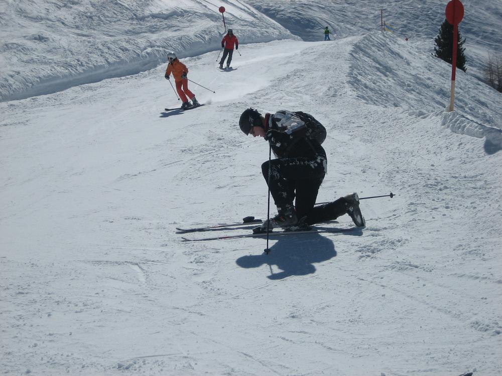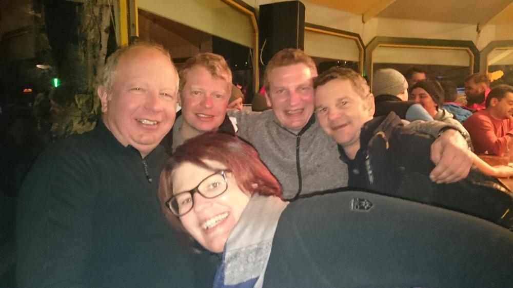 Nach Aussage von einigen Beteiligten war die gestrige Abendveranstaltung auf dem Berg lohnenswert. Die ortsansässigen Skischulen führten eingeübte Präsentationen vor; ein Feuerwerk ähnlich dem Dümmerbrand bildetet den Abschluss. Nicht alle Besucher aus unseren Reihen fanden den direkten Weg zurück ins Hotel. Nach dem Frühstück ging es wieder hinauf in die Oetztaler Bergwelt. Die Sichtverhältnisse waren minimal schlechter als an den Tagen zuvor, was uns aber nicht davon abhielt, wieder in leistungsmäßig gleichen Gruppen unsere Bahnen zu ziehen.Nach dem Abendessen im Hotel fand eine intensive Nachbetrachtung der vergangenen Tage statt. Der Betreiber des Hotels Jägerhof, in dem wir diese Woche untergebracht waren, überraschte uns mit einer Musikauswahl, von der angeblich ganz Oetz nichts gewusst haben will. Es wurde sogar getanzt.