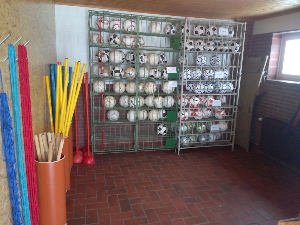 Ballfächer und Materialien wurden aus dem Schiedsrichterraum entfernt. Somit fungiert der Schiedsrichterraum jetzt auch nur noch als Raum für die Schiedsrichter und nicht mehr zusätzlich als Materialraum. Der neue Ballraum befindet sich nun im rechten Abteil des ehemaligen Clubraums. Dieser ist jetzt durch eine Trennwand in Ball- und Mannschaftsraum, in dem die Spieler nach dem Spiel oder Training ab jetzt gemütlich zusammensitzen können, unterteilt.