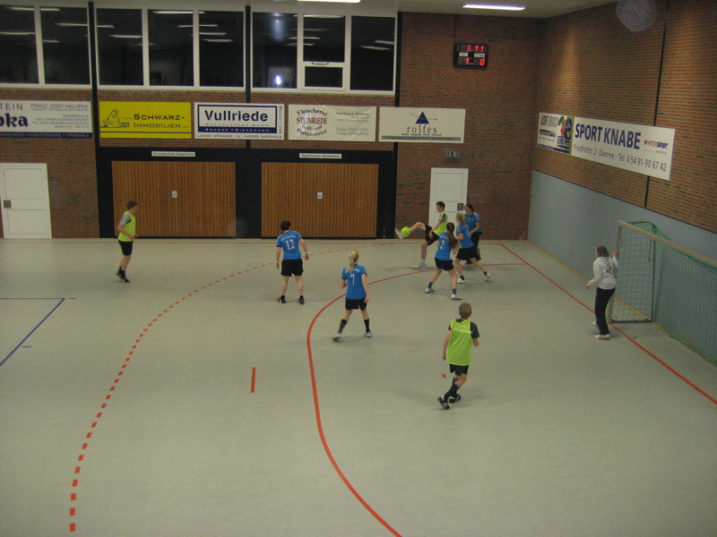 Nach ca. drei Stunden bester Unterhaltung standen sich im Finale die I. A-Jugend und die I. Herren gegenüber. Beide Mannschaften konnten sich mehr oder weniger souverän durch das Turnier spielen. Im Vorfeld hatten die I. Damen nur auf Grund des schlechteren Torverhältnisses die Teilnahme am Halbfinale verpasst. Den Damen gebührt großer Respekt, alle drei Mannschaften haben ihr bestes gegeben. Ein zwischenzeitliches Einlagespiel der I. gegen die II. Damen konnte unter der Leitung des Schiedsrichters Wolfgang Jacob die I. Damen souverän gewinnen. Für dieses besondere Spiel konnte die I. Damen unseren amtierenden Sportler des Jahres Calli Hellebusch als Trainer gewinnen. Auf der anderen Seite konnte unsere Sportlerin des Jahres, Ulrike Enneking, als Coach gewonnen werden.