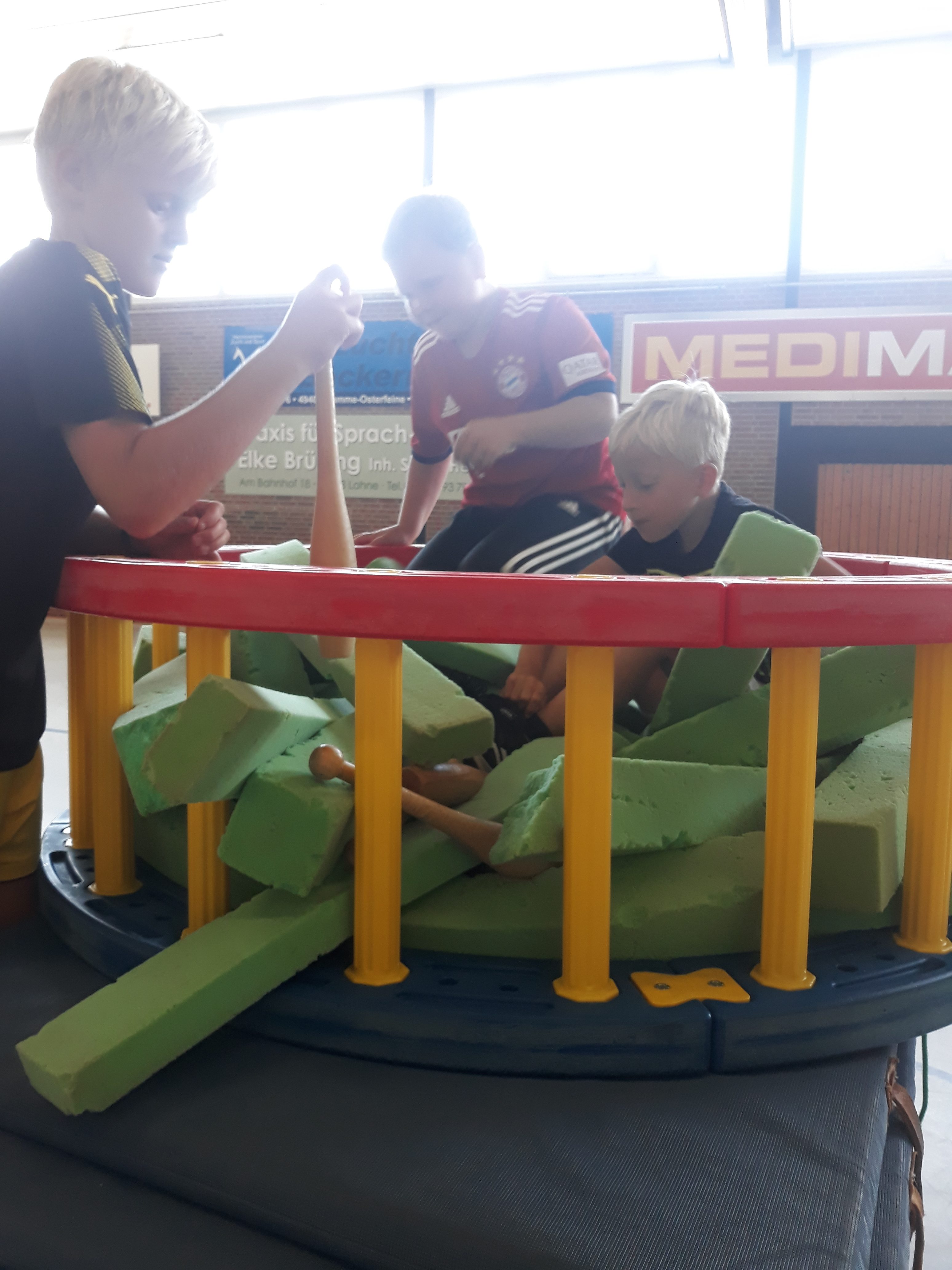 Pünktlich um 08.00 Uhr kamen heute Morgen die ersten Kinder in die Sporthalle Osterfeine zur 12. Boge – Ferienbetreuung. Von Montag (08.07) bis Freitag (12.07) können die Kinder sich hier von 08.00 – 16.00 Uhr gemeinsam in der Sporthalle oder auf dem Sportgelände unter Aufsicht der Betreuer bewegen. Mit über 70 Anmeldungen ist die Ferienbetreuung auch in den Sommerferien sehr gut besucht.