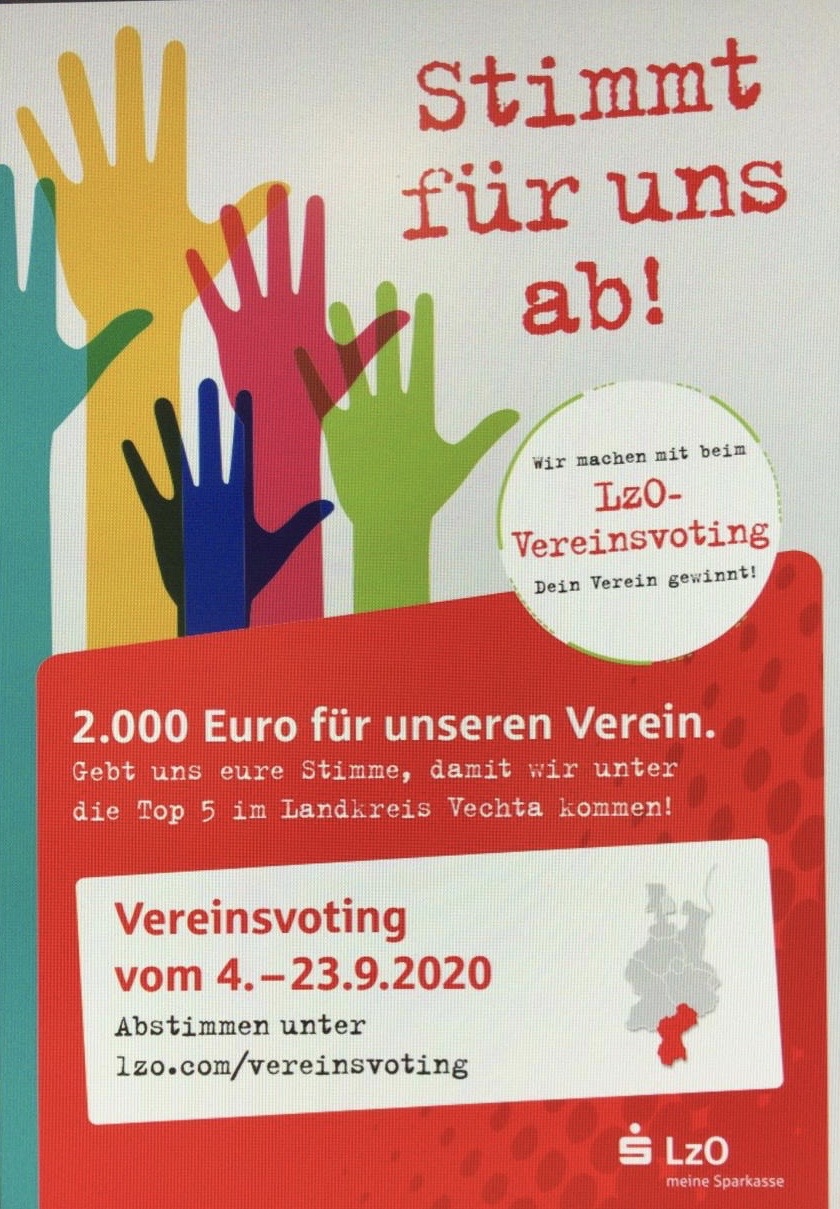 Die LzO führt wieder vom 04.09. bis zum 23.09.2020 ein Vereins-Voting durch, bei dem ein Verein 2.000€ gewinnen kann.