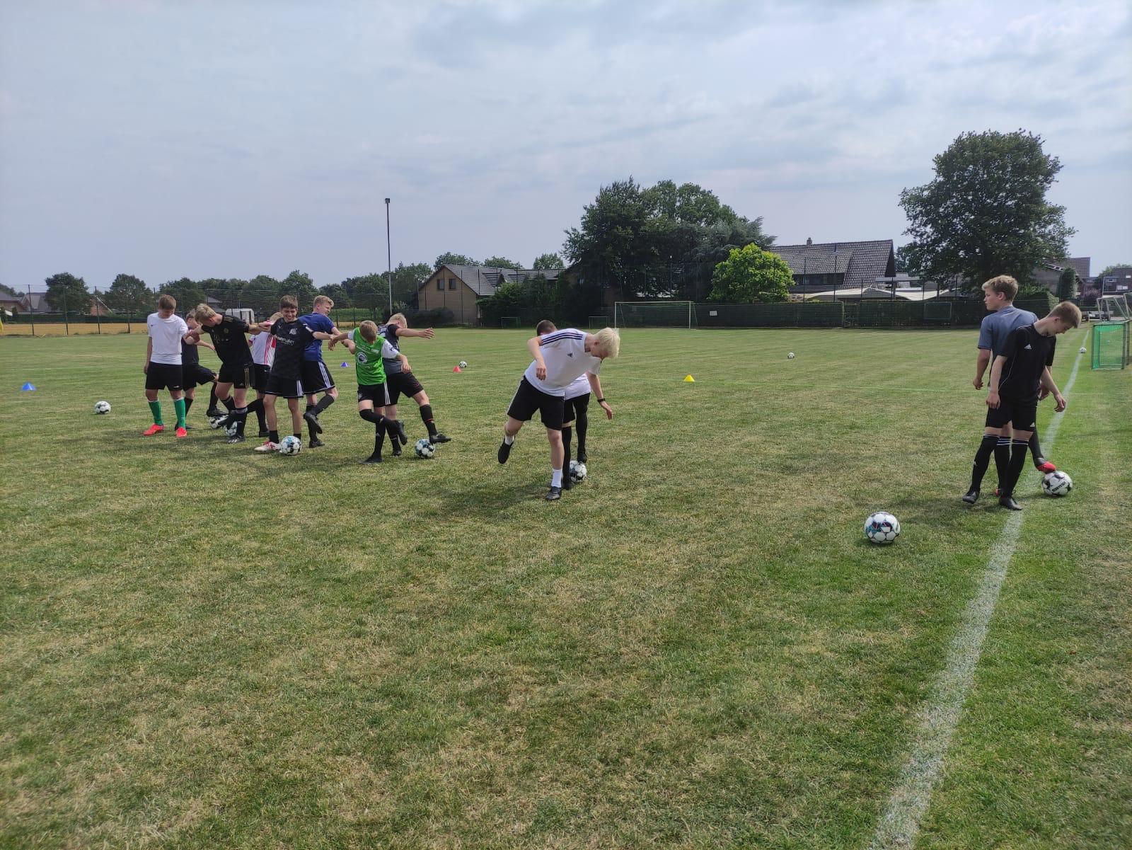 Ein letztes Mal hieß es am Folgetag gemeinsam aufstehen, Tisch decken und Brötchen holen. Der finale Tag des Trainingslagers war eine echte Willensprobe. Die vormittägliche Trainingseinheit war zwar nicht übermäßig intensiv, die Belastungen der vergangenen hatten jedoch Spuren hinterlassen. Die Muskeln brannten und der Kopf war müde. Um das Testspiel gegen RW Damme II überhaupt überstehen zu können war die auf das Mittagessen folgende Faszientraining also Gold wert. Die Prozedur war zwar äußerst schmerzhaft (unbestätigten Gerüchten zufolge waren die Schmerzensschreie von Mattes, Tim K und Moritz O bis nach Haverbeck deutlich zu vernehmen), setzte aber noch einmal dringend benötigte Kräfte frei.