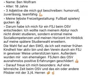 SWO sucht zum 01.07.2026 oder 01.08.2026 eine FSJ-bzw BFD-Kraft.