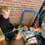 Nach dem Mittag wurde um die Joghurts und die Kekse gebuhlt, weil einer ja wohl zu wenig sei, so die Aussage einiger Kinder. Außerdem konnte aus Sicht der Kinder heute eine ihrer „Traditionen“ umgesetzt werden: Dabei wird einer der Übungsleiter gefangen und gefesselt. Dies gelang den Kindern heute sogar mehrere Male, da sowohl unser FSJ-ler Ben, als auch unsere Betreuer Inga und Anna Bley überwältigt wurden. Zwar konnten sich Inga und Ben relativ schnell wieder befreien, Anna jedoch musste sich der Horde an Kindern letztlich geschlagen geben.