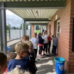 Wie es typisch für einen Freitag in der Ferienbetreung ist, gab es auch heute eine Mantaplatte von Petra und Uschi. Die Schlange war zwar lang, aber dafür war die Vorfreude auf das leckere Essen um so größer.