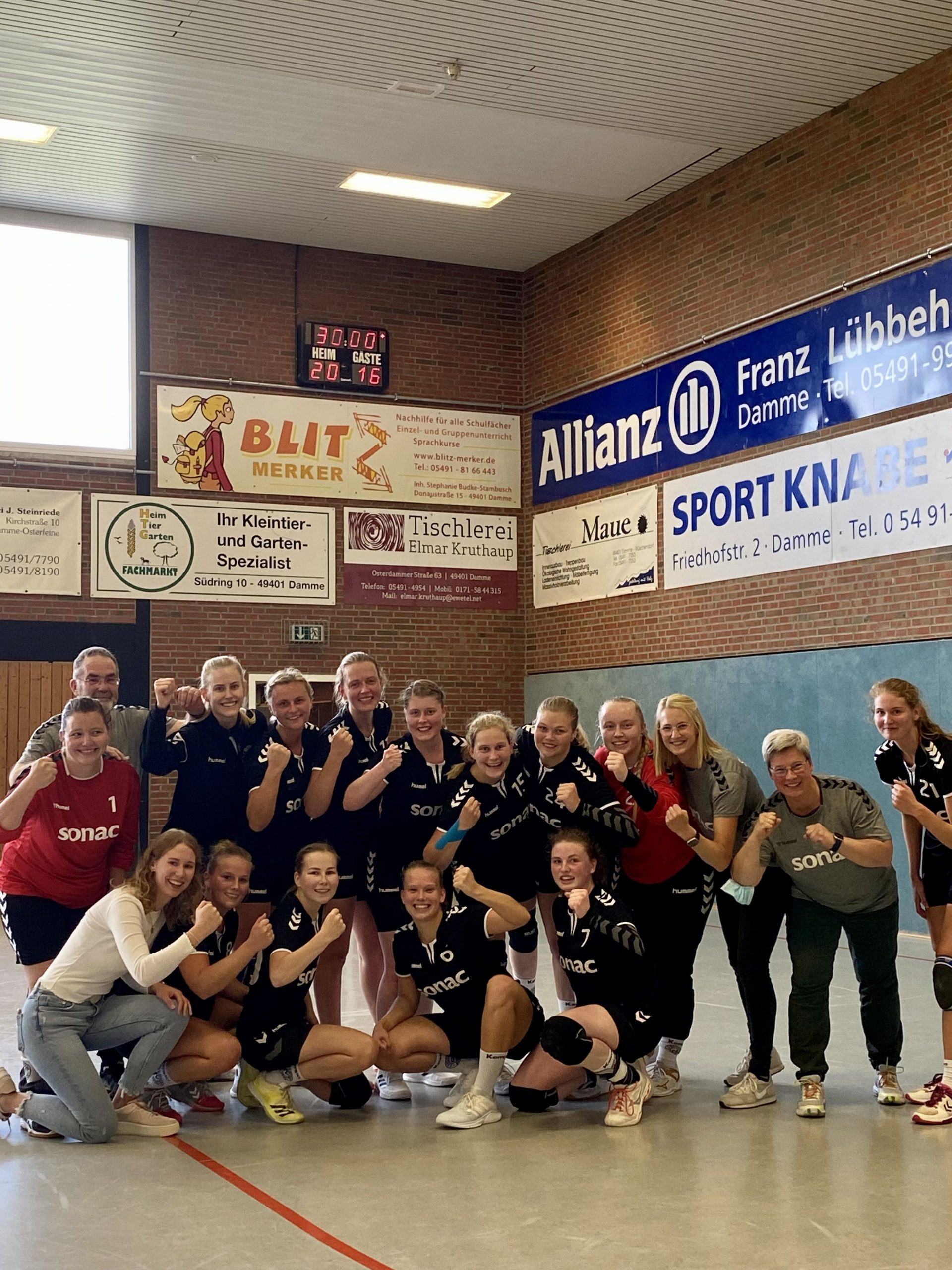Das haben wir versucht in der 2. Halbzeit zu verbessern. Die Abwehr stand auch weiterhin und dadurch konnten wir uns zu Beginn der 2. Halbzeit Bälle erarbeiten und den Spielstand von 9:11 auf 13:11 drehen. In der 38. Minute glich Cloppenburg nochmal auf 13:13 aus, doch das sollte der letzte Ausgleich für den Rest des Spiels sein. Den Gästen gelang bis zur 48. Minute kein Tor mehr, was der starken Abwehr und Frauke im Tor zu verdanken war. Jessi, Julia und Mareen erhöhten unseren Vorsprung daraufhin auf 16:13. Auch eine 2-Minuten-Strafe gegen Mareen brachte uns nicht mehr aus dem Konzept und sogar in Unterzahl kassierten wir nur das auf die Strafe folgende Siebenmetertor. Im Gegenzug arbeitete sich Julia durch die Abwehr und erzielte noch ein Tor für uns, wodurch der Vorsprung in Unterzahl nicht schmolz. Für die letzten 10 Minuten blieb es spannend, auch wenn wir in der 51. Minute mit 4 Toren führten. Grund dafür waren ein paar Konzentrationsfehler im Angriff, wodurch wir den Ball zu leicht aus der Hand gaben und den Gästen zu viele Chancen ermöglichten. Die Abwehr und unsere Torhüterinnen machten diese Fehler jedoch wieder wett und so brachte in der 57. Minute ein Tor von Lisa zum 19:16 die Vorentscheidung. Den Cloppenburgerinnen gelang bis zum Schlusspfiff kein Tor mehr und Julia netzte kurz vor Schluss zum Endstand von 20:16 ein.