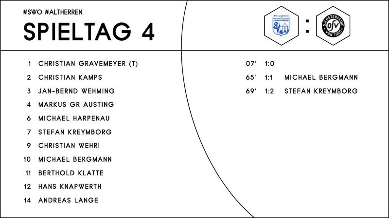 am Freitag, den 15.10.21, lud der SV BW Langförden die Auswahlmannschaft der Altherren von SW Osterfeine zum Spitzenspiel am Bohmhof ein. Beide Mannschaften waren heiß auf einen Sieg. Und es wurde kampfbetont und hitzig. Das Kartenverhältnis gewann Langförden mit 2 gelben Karten Vorsprung (3:1). Wäre das Spiel 5 Minuten früher beendet worden, hätte der Gastgeber auch das Spiel gewonnen. Bekanntermaßen dauert aber nun mal ein Altherrenspiel 70 Minuten. Dank Michi Bergmann und Zombie hat es zu unseren Gunsten im Tor der Blau-Weißen noch 2x gescheppert.
