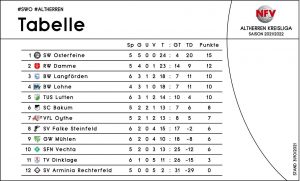 da dass letzte Spiel des Jahres verschoben wurde, schonen wir unsere Knochen bereits eine Woche früher. Was uns dieses Jahr aber nicht mehr genommen werden kann ist die Tabellenführung. Genießt den Anblick der Tabelle, druckt sie euch aus und hängt sie an einem schönen Ort in der Küche. Bis zum nächsten Bericht und bleibt gesund und munter. Eure