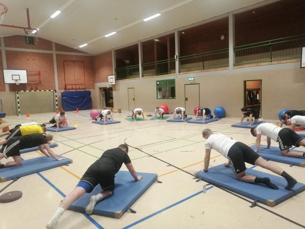 Winterfest: Laura Berens versucht in der punktspielfreien Zeit unsere Fußballer der I- II-Herrn und A-Jugend gut über den Winter zu bringen – siehe Foto. Danke Laura für Dein Engagement und den Fußballern sei gesagt: Muskelkater gehört zum Sport dazu……..