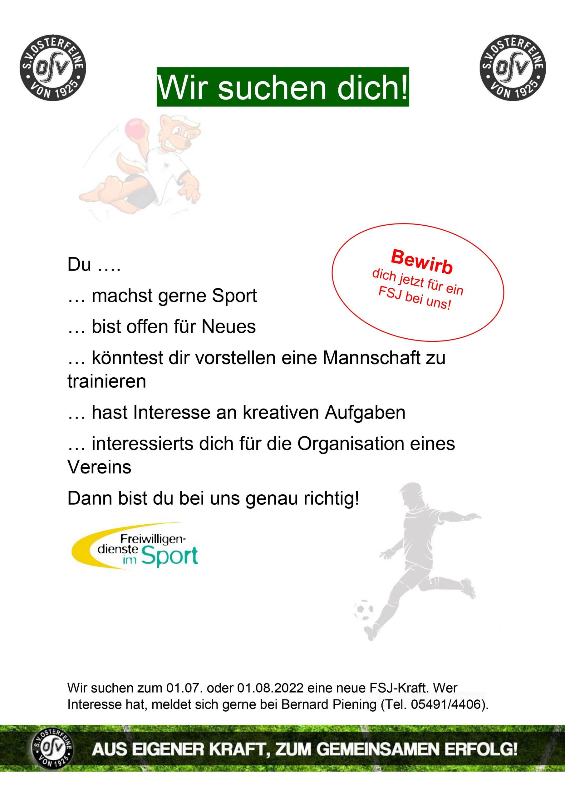 SWO sucht zum 01.07.2026 oder 01.08.2026 eine FSJ-bzw BFD-Kraft.