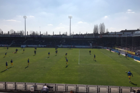 Bei bestem Fußballwetter wurden wir von unserem gut gelaunten Busfahrer Richtung Bremer Brücke chauffiert. Vor Ort trauten wir unseren Augen nicht… wir waren der einzige Bus auf dem Parkplatz, schon irgendwie ein trauriger und gruseliger Anblick im Pandemiezeitalter. Aus Insiderkreisen hatten wir erfahren, dass Luc nach langer Verletzungspause auf jeden Fall auch im Kader ist – was die Laune noch weiter aufschnellen ließ.