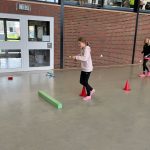 Unsere Atlethen traten paarweise in 9 verschiedenen Disziplinen an, wobei sie sich in in Dingen wie Gummistiefelweitwurf, Torwandschiessen oder Rollbrettrennen beweisen mussten.