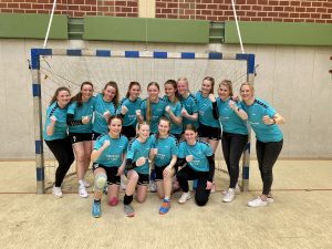 Für die 2. Halbzeit haben wir uns dann vorgenommen, in der Abwehr schneller zu sein, damit die Gegner nicht mehr so einfach durchbrechen können. Außerdem musste sich die Chancenverwertung verbessern, denn in der ersten Hälfte haben wir einige sichere Bälle verworfen. Zu Beginn der 2. Halbzeit fanden wir noch nicht richtig in die Spur, aber Marieke hielt im Tor viele gegnerische Würfe, sodass sich Mühlen nicht weiter absetzen konnte. Bis zur 34. Minute legte Mühlen immer wieder ein Tor vor, aber wir konnten ausgleichen. Pauline erzielte in der 36. Minute dann wieder die erste Führung, aber dann glich Mühlen wieder aus. 21:21 stand es in der 41. Minute und daraufhin konnten wir durch Tore von Inga und Eva auf 23:21 davonziehen, Marieke hielt einen Siebenmeter. In der 47. Minute verkürzte Mühlen nochmal auf 23:22, woraufhin Greta das 24:22 warf. Die letzten Minuten hieß es dann „kühlen Kopf bewahren und keine Fehler mehr machen“, damit der Sieg sicher war. Zwar warf Mühlen drei Sekunden vor Schluss noch das 23. Tor, doch das machte uns nichts mehr, denn auf der Anzeigetafel stand der Sieg: 24:23 gewinnen wir in Mühlen – ein wie erwartet hartes Stück Arbeit!