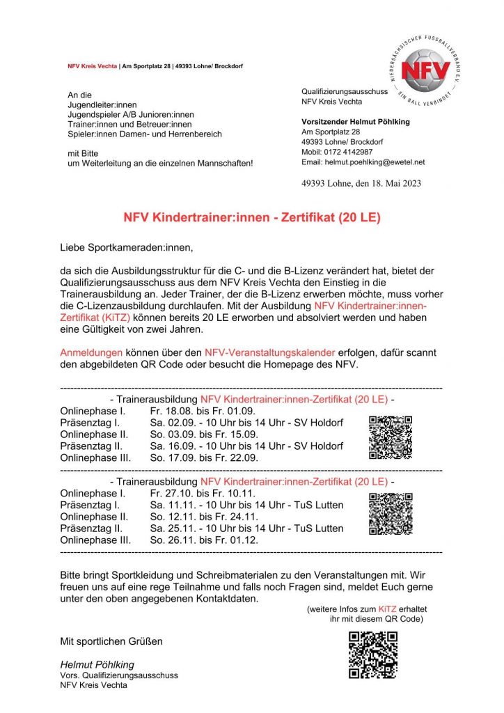 Wer Interesse hat melde sich bitte bei Bernard Piening Tel. 05491/4406 oder unter bernard.piening@ergo.de