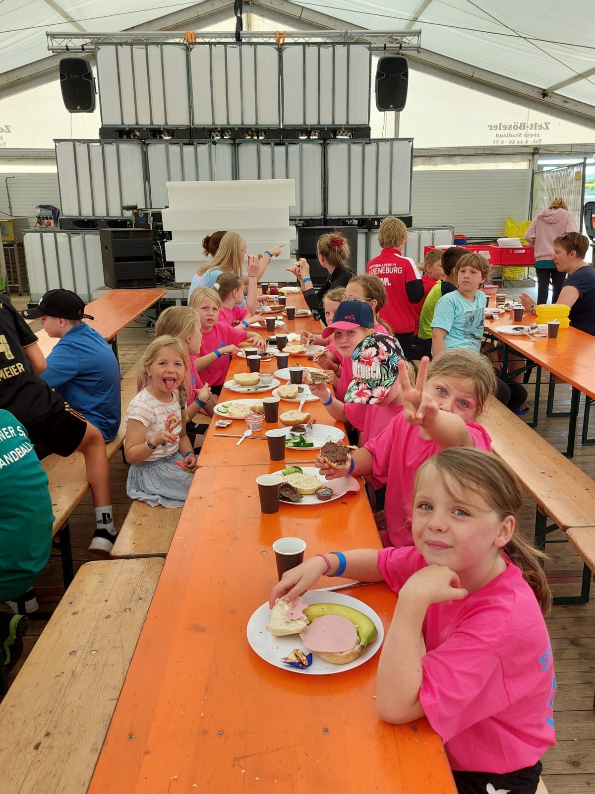 Startschuss war am Freitag um 15 Uhr. Insgesamt 4 Mannschaften mit ihren Trainern und Betreuern machten sich auf den Weg nach Cuxhaven. Nach 2,5 Stunden Fahrt, Fußmarsch über den Deich, Zeltaufbau, Lage checken und Pizza für alle, ging es ins Zelt. Denn am Samstag standen die Gruppenspiele an. Die D1 und D2 hatten jeweils 4 Spiele, während die beiden E- Jugenden 3 Spiele absolvierten. Bei super sonnigem Wetter konnten sich die Kids am Abend in der Nordsee abkühlen.