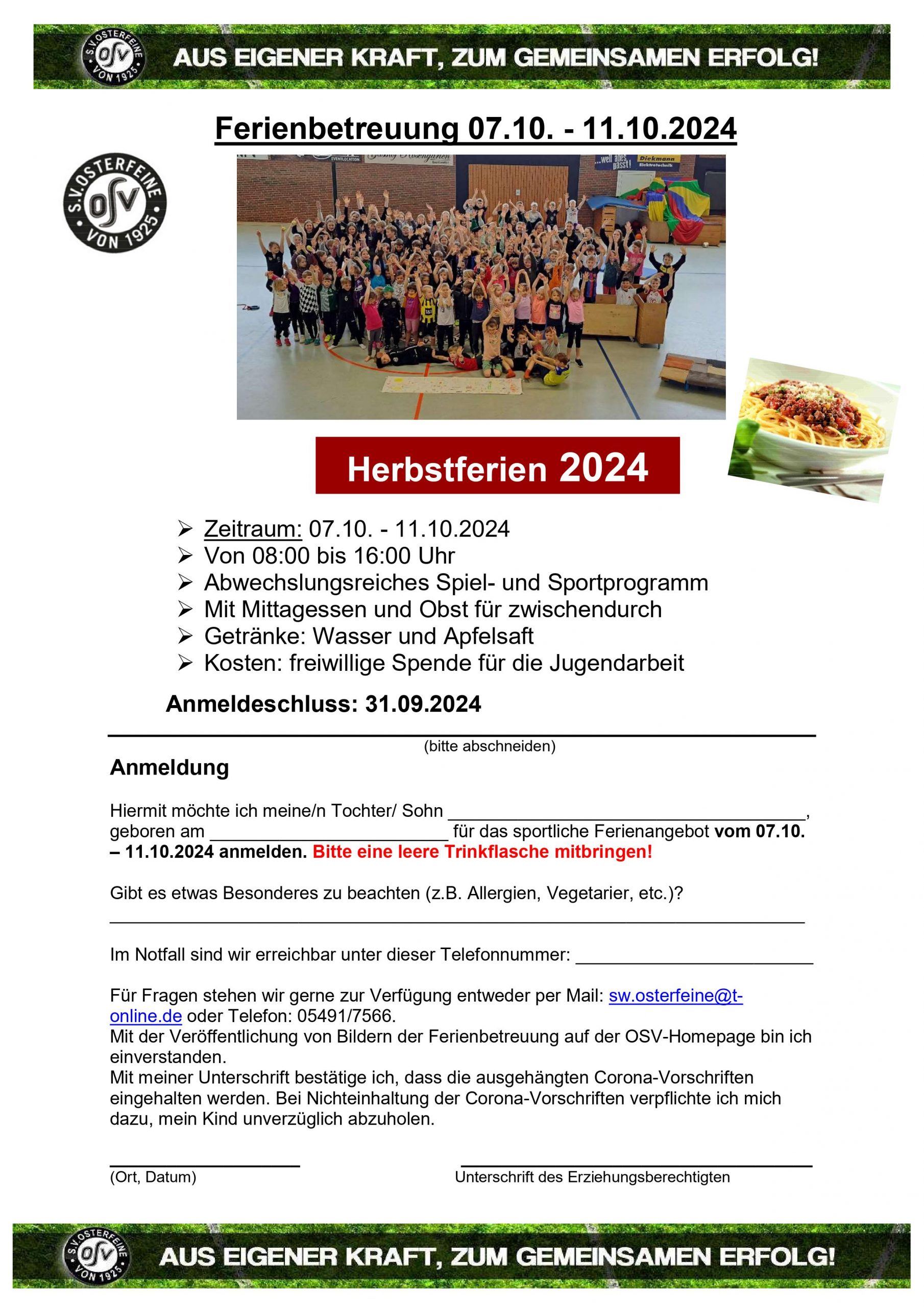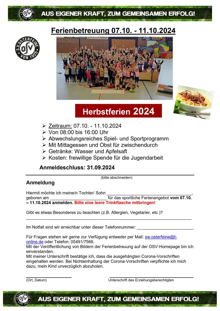 06.-10.07.2026 - Ferienbetreuung - Herbstferien 2026