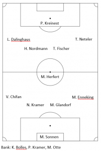 - 74. Minute: Tom steckt lang durch zum gestarteten Fischer, der dem Torwart keine Chance lässt.