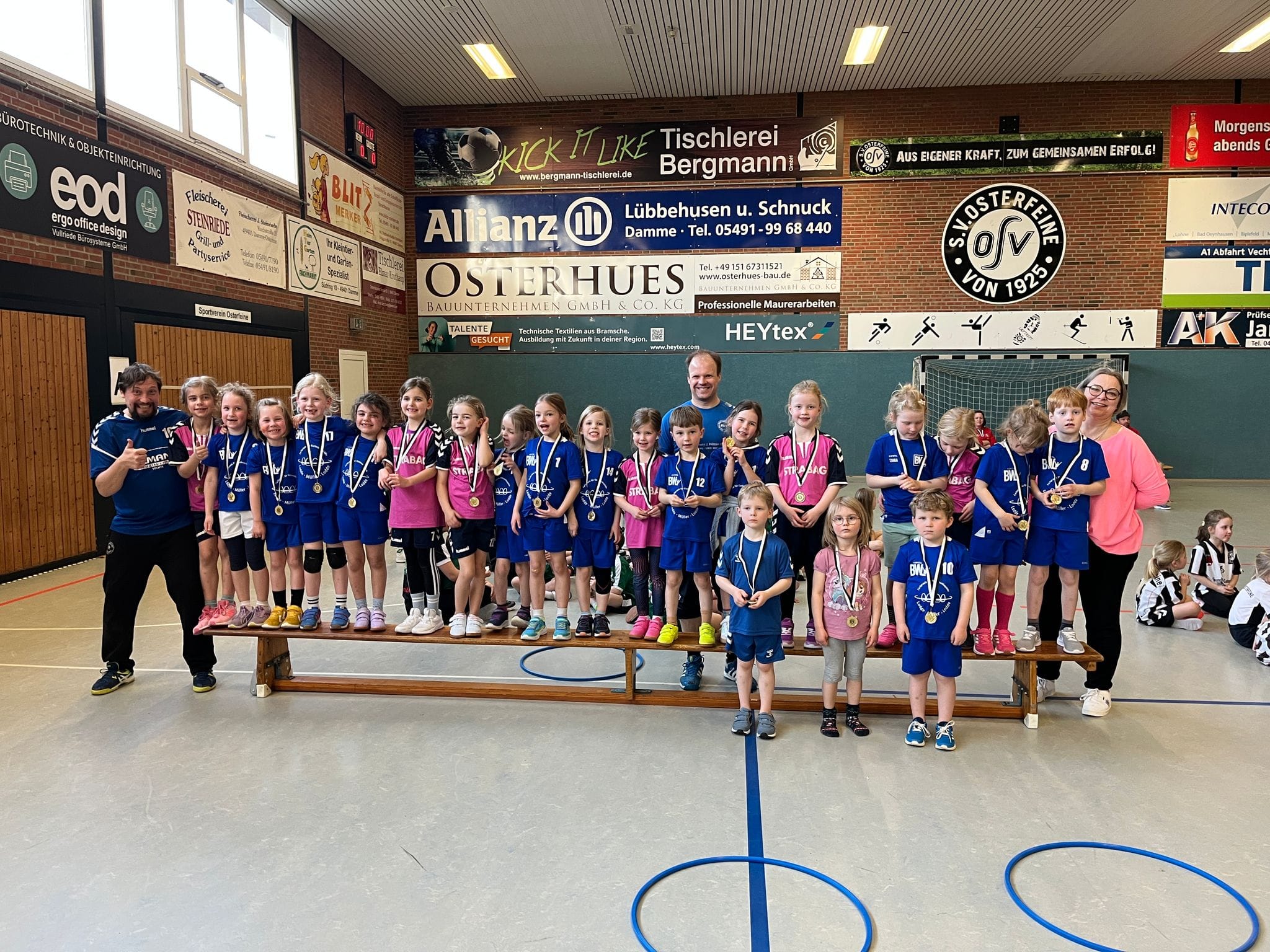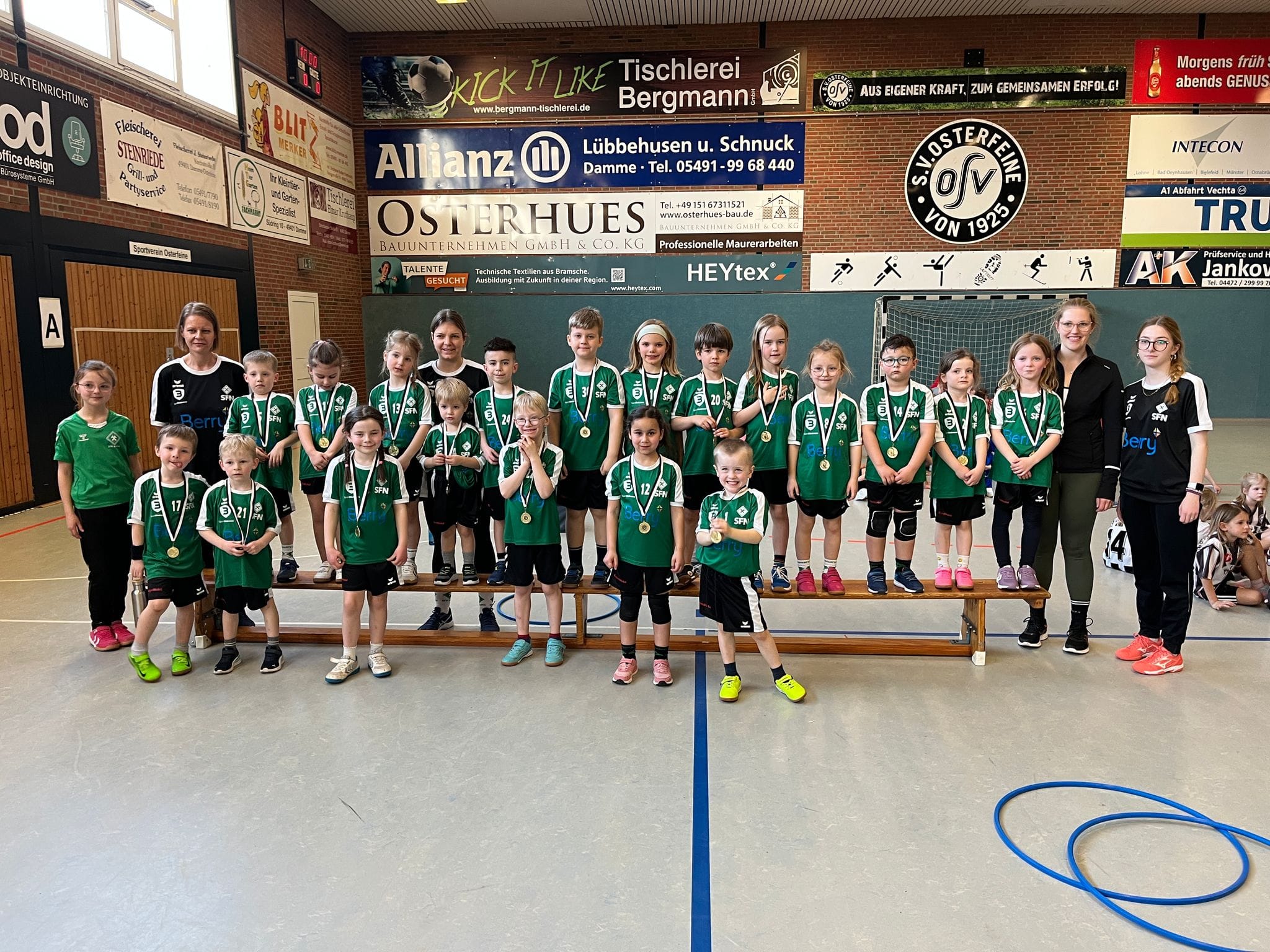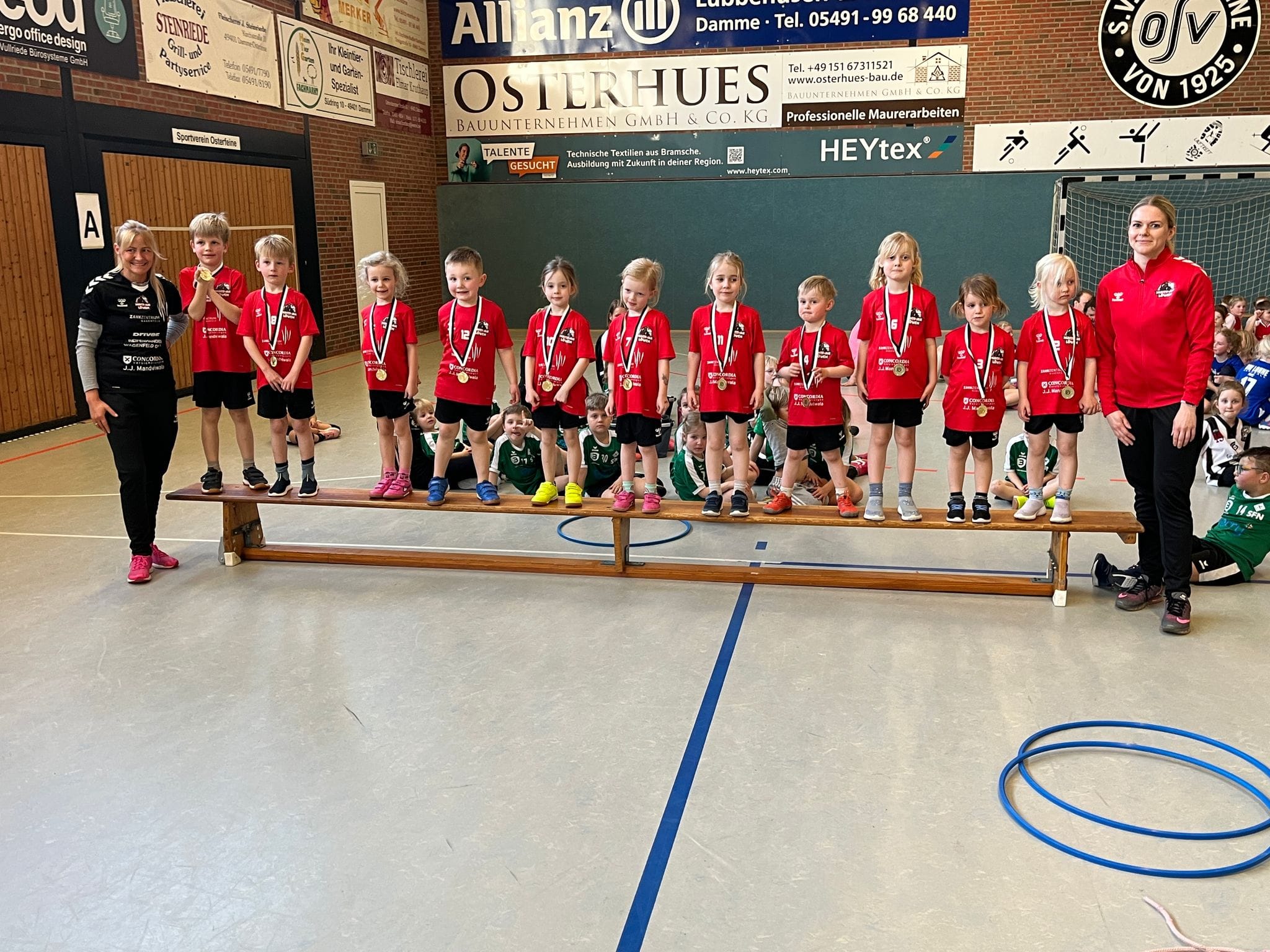 An dem Turnier nahmen auch die Mannschaften aus Goldenstedt, Vechta, Lohne, Damme und Diepholz teil. Viele Eltern und Großeltern kamen in die Sporthalle, um ihre Kinder und Enkelkinder beim Handballspiel zu unterstützen. Somit war nicht nur auf den zwei Spielfeldern und auf einem Spieleparcours, der zwischen den Handballfeldern aufgebaut wurde, eine Menge los, sondern auch auf der Tribüne und im Clubraum, wo es Kaffee und Kuchen gab.