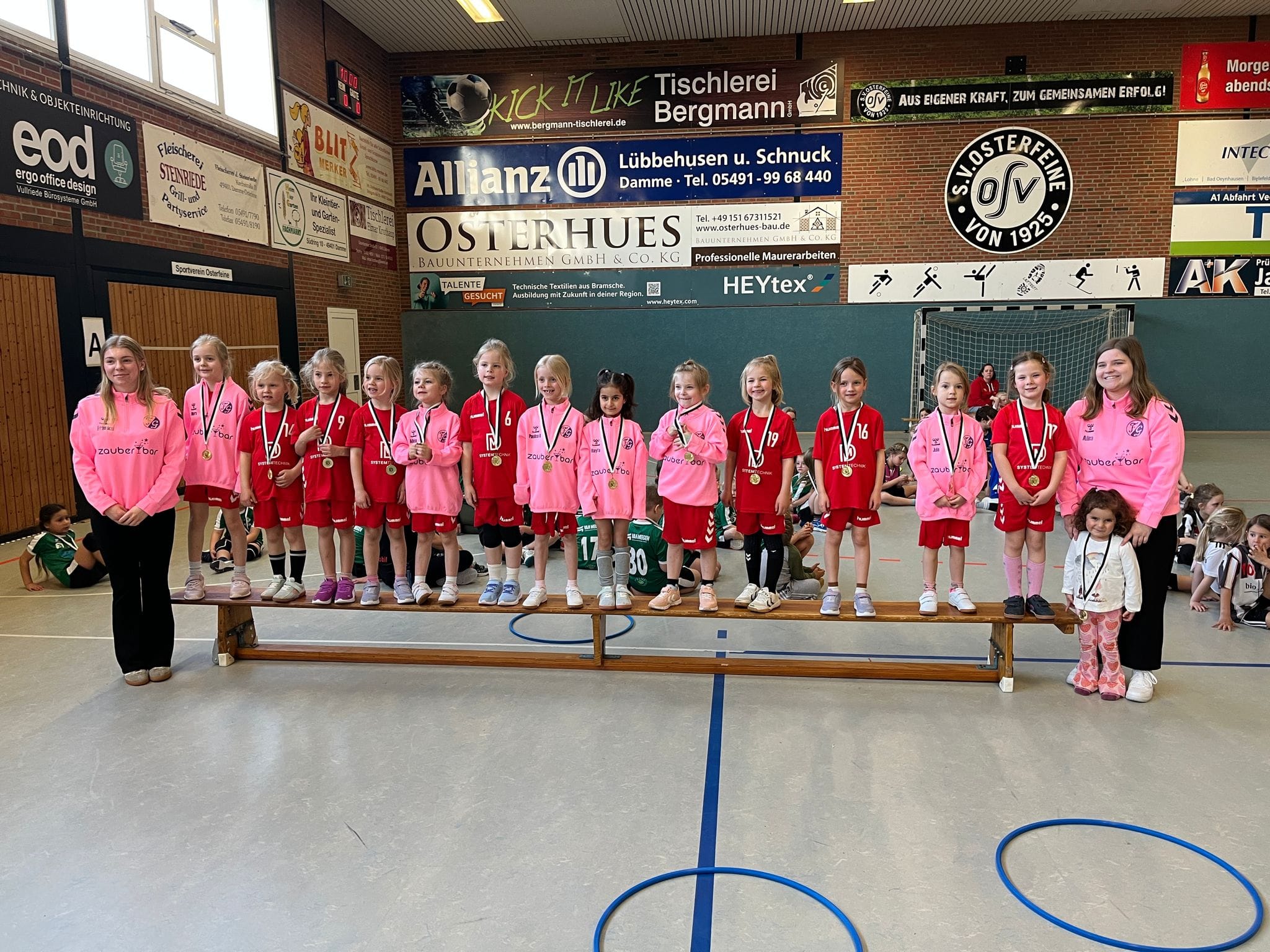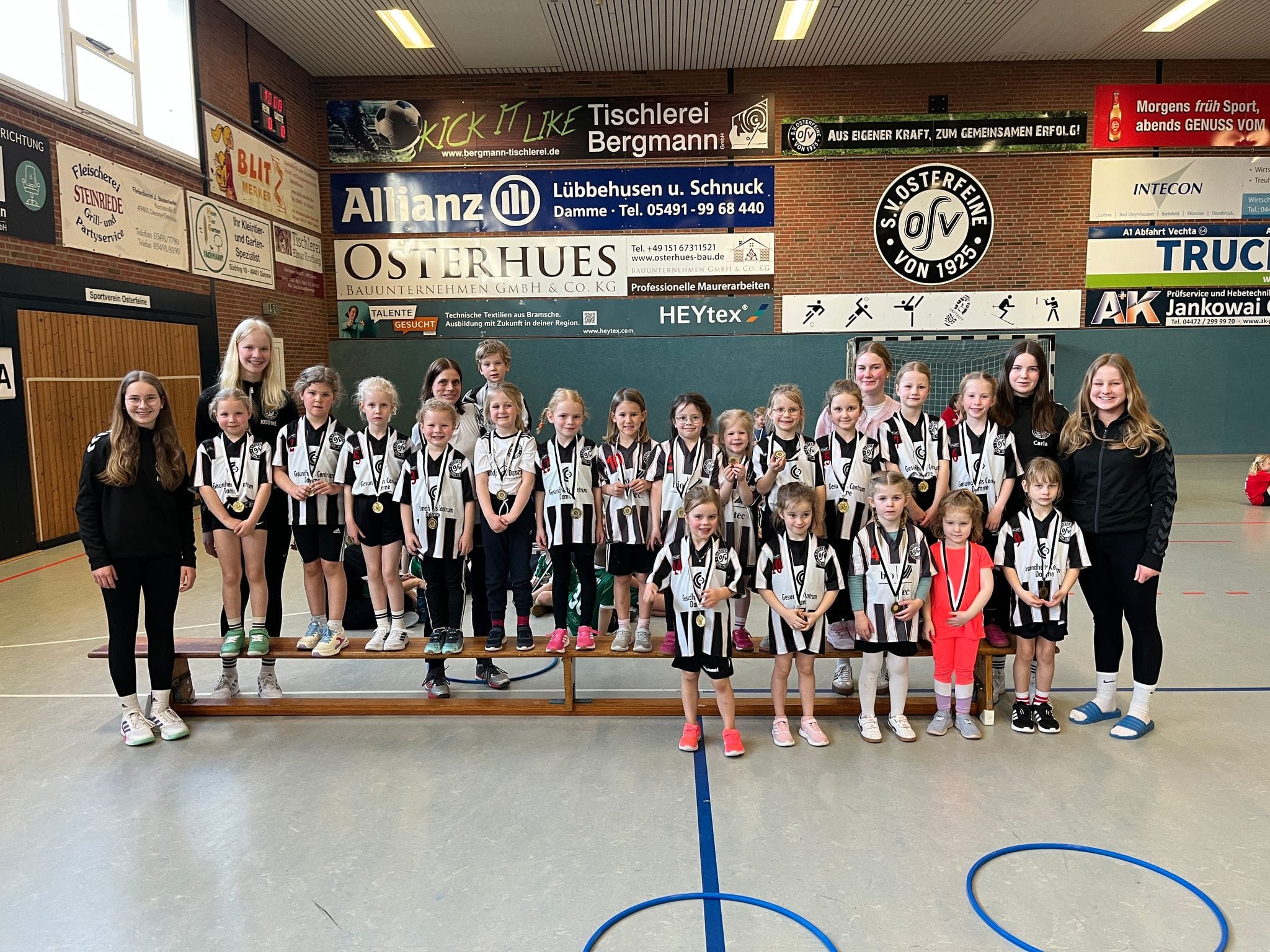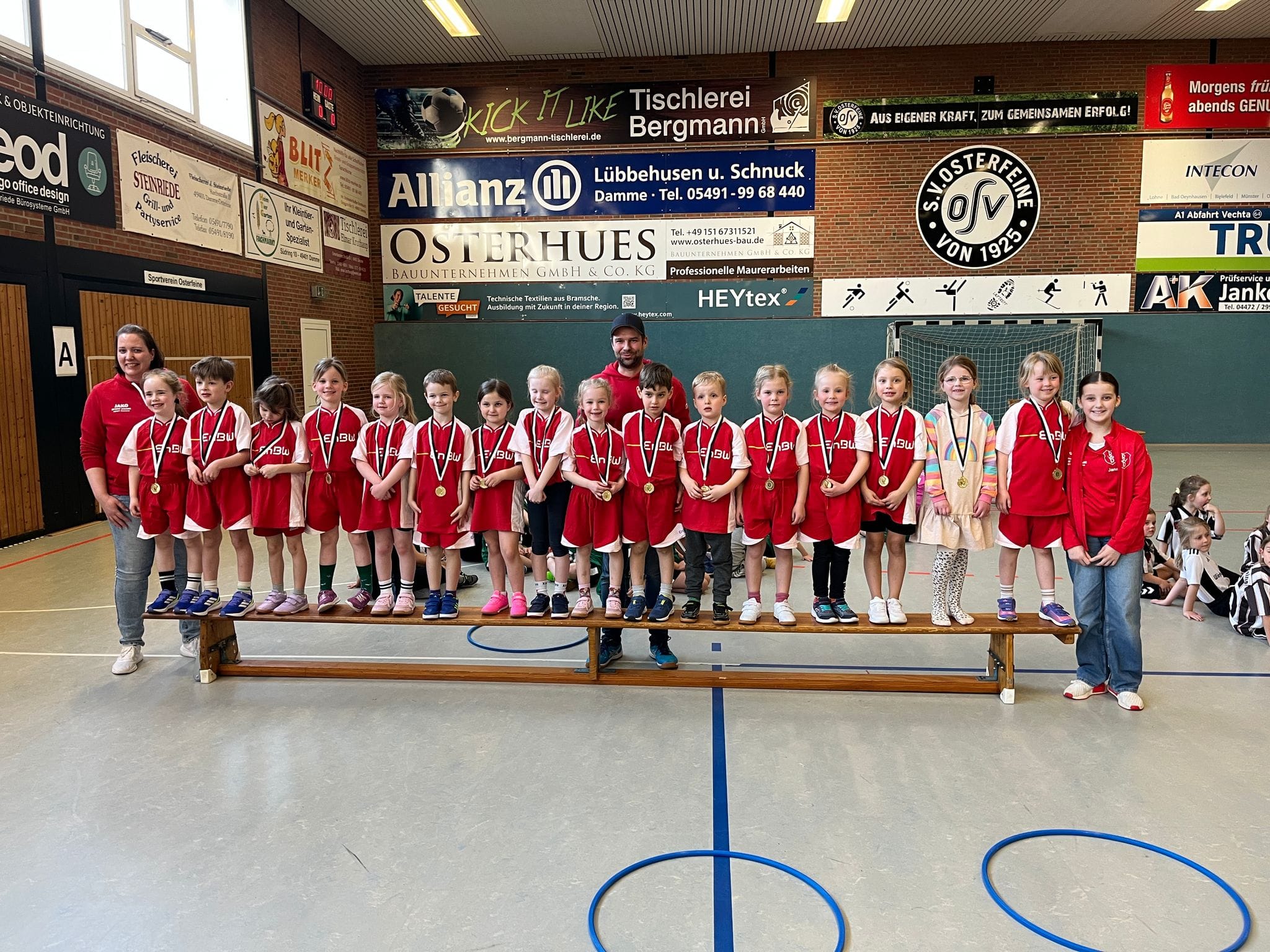 Mit viel Freude und Engagement spielten die Kinder gegeneinander und zeigten dabei großartige Leistungen. Während des Turniers war bereits eine Entwicklung bzgl. Spielverständnis, Selbstvertrauen und Ballsicherheit zu beobachten. Zum Turnierabschluss bekamen alle Spieler/innen eine Medaille überreicht. Es war ein rundum gelungener Nachmittag.