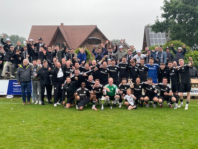 ….die 1. Herren-Fußballmannschaft gewinnt die Kreisliga-Meisterschaft und setzt noch einen oben drauf: DOUBLE-Sieger nach dem gestrigen 3:2-Erfolg im Auswärts-Pokalfinale in Bakum gegen Bakum!! Was für eine Geschichte!!
