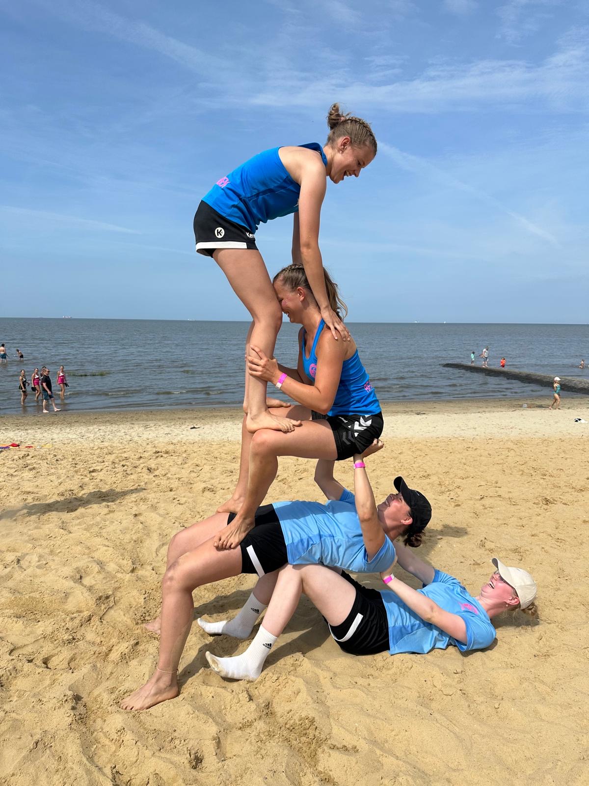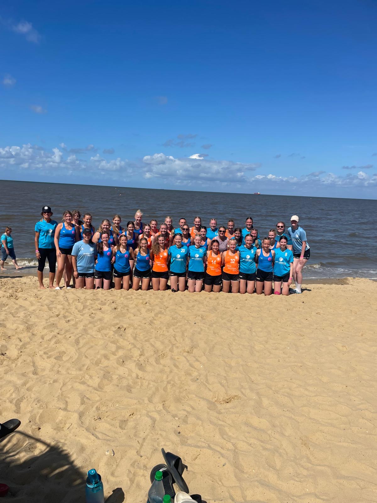Motiviert und mit jeder Menge Gepäck starteten wir am Freitag, den 08.08.2025, unsere Reise zum diesjährigen Beachturnier der A- und B-Jugenden in Cuxhaven. Nachdem alles im Bus verstaut war, hieß es mit etwas Verspätung dann auch schon wieder auspacken… Alle packten mit an, denn 4 große Zelte und das ganze Gepäck schleppten sich schließlich nicht alleine über den Deich zum Zeltplatz…