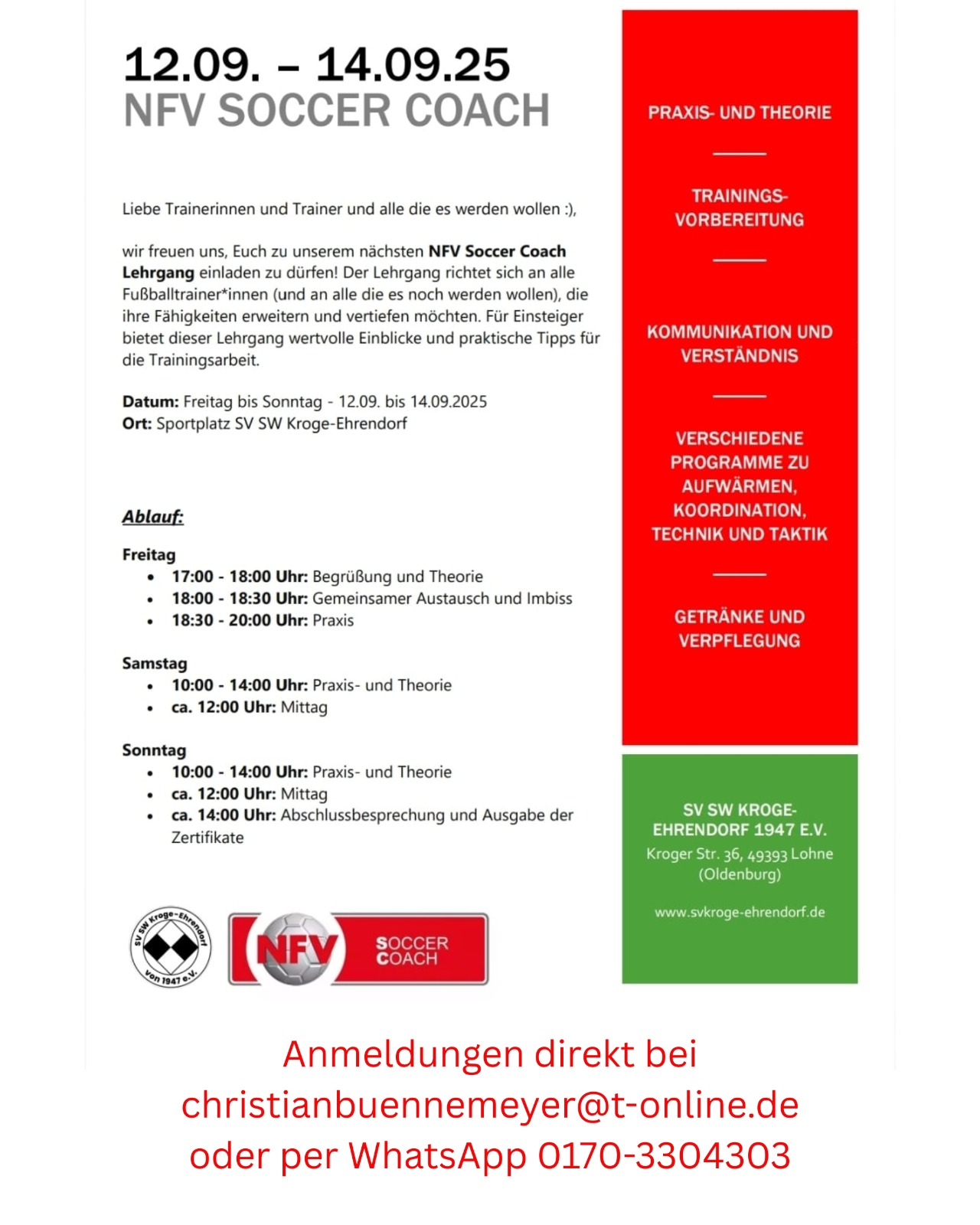NFV Soccer Coach-Lehrgang 12.-14.09.25 in Kroge