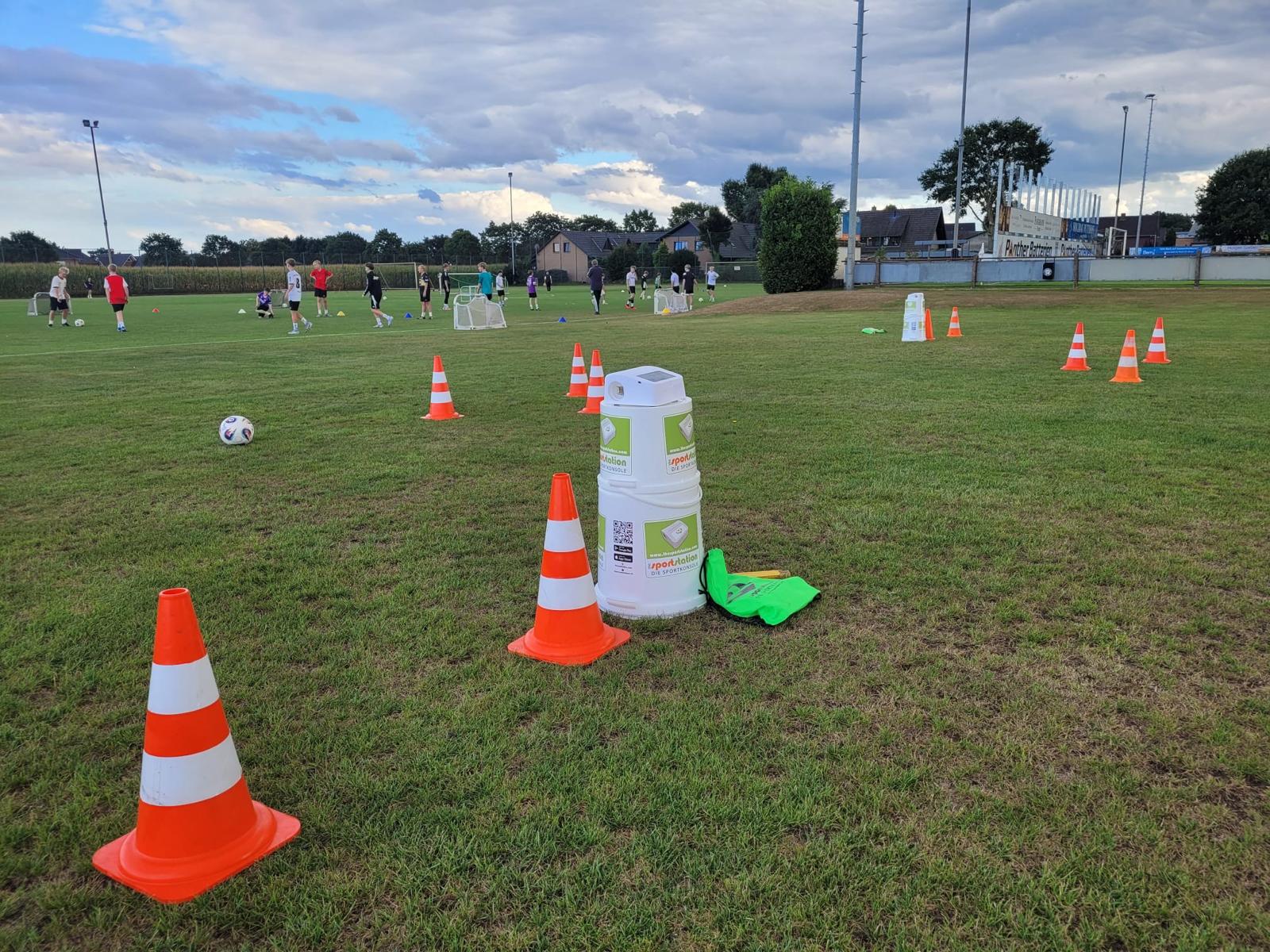 Das Trainergespann aus Seppl Ripke, Frank Böckmann, David Piening, Luca Meyer, Torwarttrainer Moritz Sonnen und Bubble versucht gemeinsam ein gutes Angebot für unsere Jungs zu absolvieren. Mit Moritz Sonnen kümmert sich unser Torwart der I-Herren um unsere Torhüter – siehe Foto und Frank Böckmann unterstützt mit der Anwendung der Sportstation die Leistung des Einzelnen um das Leistungsvermögen der Jungs zu dokumentieren und kontinuierlich zu verbessern – siehe auch hier das Foto.