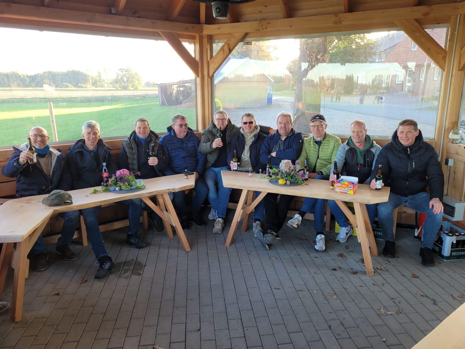 Nach einer kurzen Verweildauer setzte sich die Gruppe wieder in Bewegung, mit dem nächsten Etappenziel Südfelde vor Augen. In Kemphausen musste noch einmal ein kurzer Zwischenstopp eingelegt werden – offenbar hatten einige Herren die frische Oktoberluft etwas unterschätzt und brauchten eine kleine Aufwärmphase.