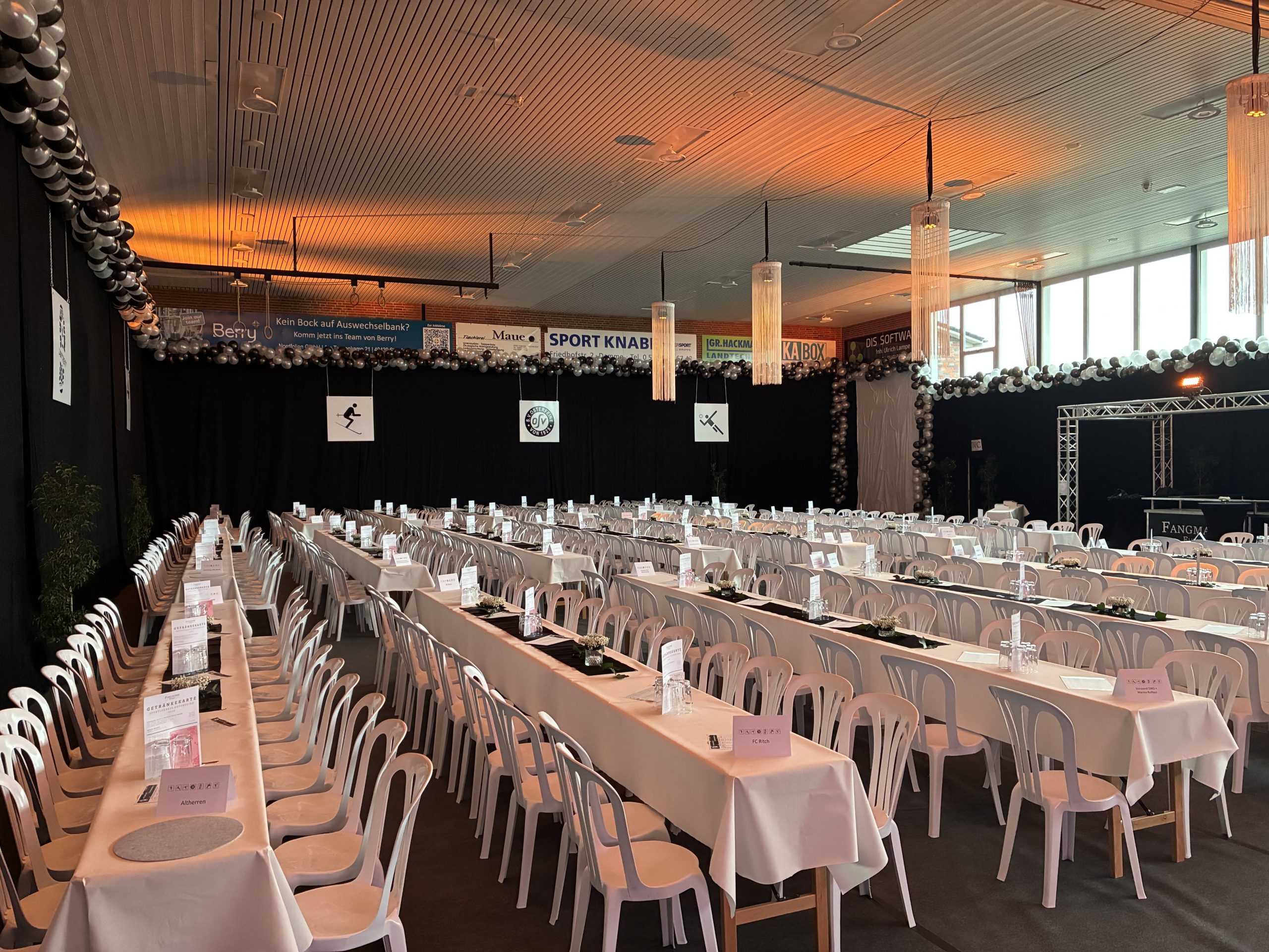 Die Sporthalle wurde durch viele fleißige Helfer wieder in eine perfekte Schwarz-Weiße-Feier-Location umgewandelt.