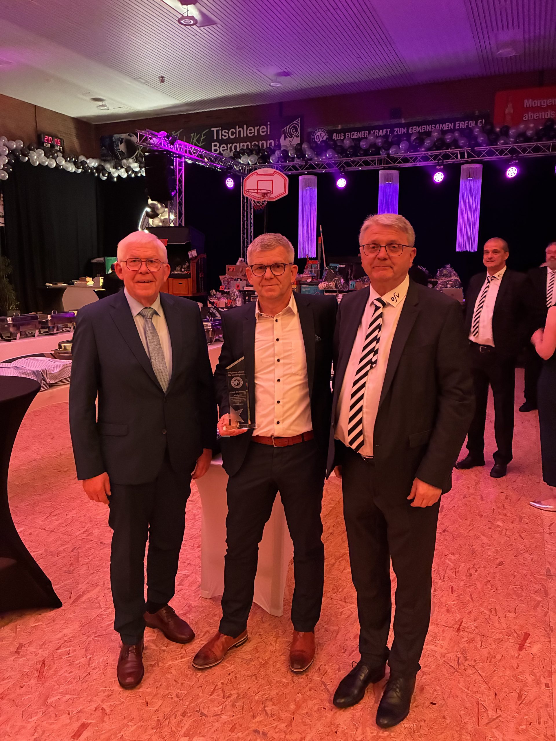 Nachdem der 1. Vorsitzende Bernard Piening die Gäste begrüßte, stand bereits der erste Höhepunkt des Abends auf dem Programm. Der Verleihung des Ehrenamtspreises hat sich mittlerweile auf dem Sportlerball etabliert. Eine Neuerung wurde in diesem Jahr allerdings vorgenommen, denn der Preis wurde zu Ehren der 2024 verstorbenen OSV-Ehrenamts-Ikone Wolfgang Jacob in „Wolfgang-Jacob-Ehrenamtspreis“ umbenannt. Für die Vergabe des 1. Wolfgang-Jacob-Ehrenamtspreises konnte kein besserer Laudator als der ehemalige 1. Vorsitzende des Sportvereins, Josef Gravemeyer, gefunden werden. Josef war ein jahrzehntelanger Wegbegleiter und inniger Freund von Wolfgang Jacob. Verliehen wurde der Preis an Frank Böckmann, der von Kindesbeinen an bis heute quasi täglich auf der OSV-Sportanlage zugegen ist und stets seine Hilfe für den Verein zur Verfügung stellt.