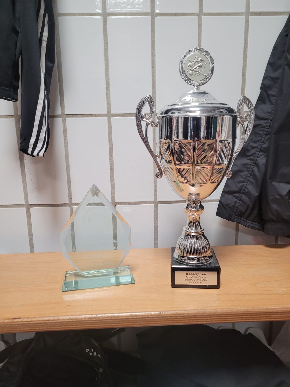 Aus den Händen von Kreisjugendwart Patrick Zinke konnten unsere Jungs dann die Glückwünsche, den Siegerpokal und den Ehrenteller entgegennehmen. Und zusätzlich schaffte unsere Mannschaft noch die Qualifikation für die Bezirksmeisterschaft im Futsal am 7.2.26!!!